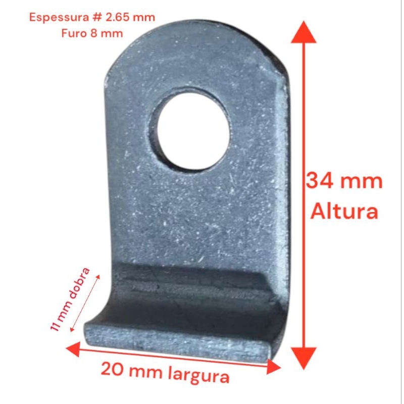 Porta cadeado dobrado KIT com 50 UN Soldar cantoneira orelha 34 X 20 mm furo 8 mm