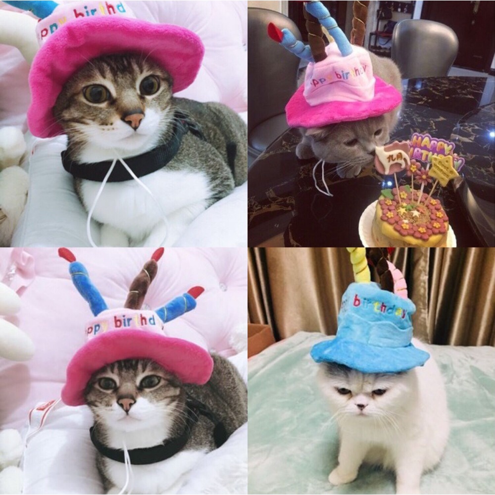 Chapéu Bonito Do Animal De Estimação Do Gato Do Cão De Aniversário Ajustável Veludo Cor Vela Pequeno / Médio Chapéu Pet Cosplay Headwear Topper Personalizado para Bolo Pet