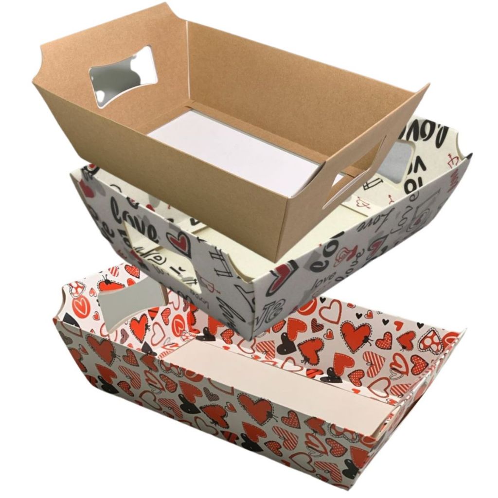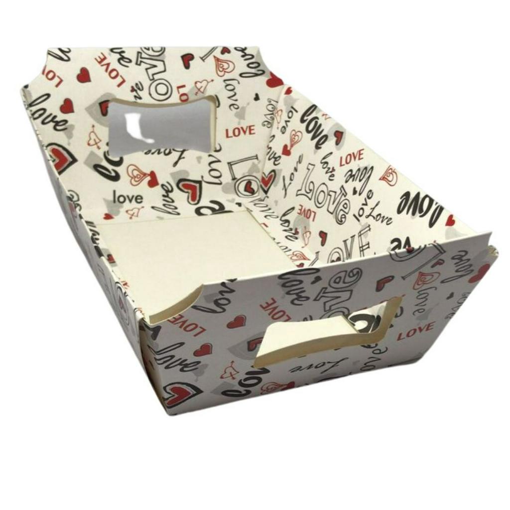 5 Cestas de Papel Cartão Grande, Média e Pequena Estampa Amor/Love/Coração/kraft ou Branca para Festa Decoração.