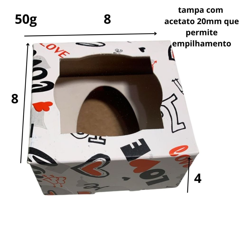 100 Caixas Pra Ovo de Páscoa de Colher 50g 8 x 8 x 4 Tampo de Acetato que Permite Empilhamento Caixa Degustação