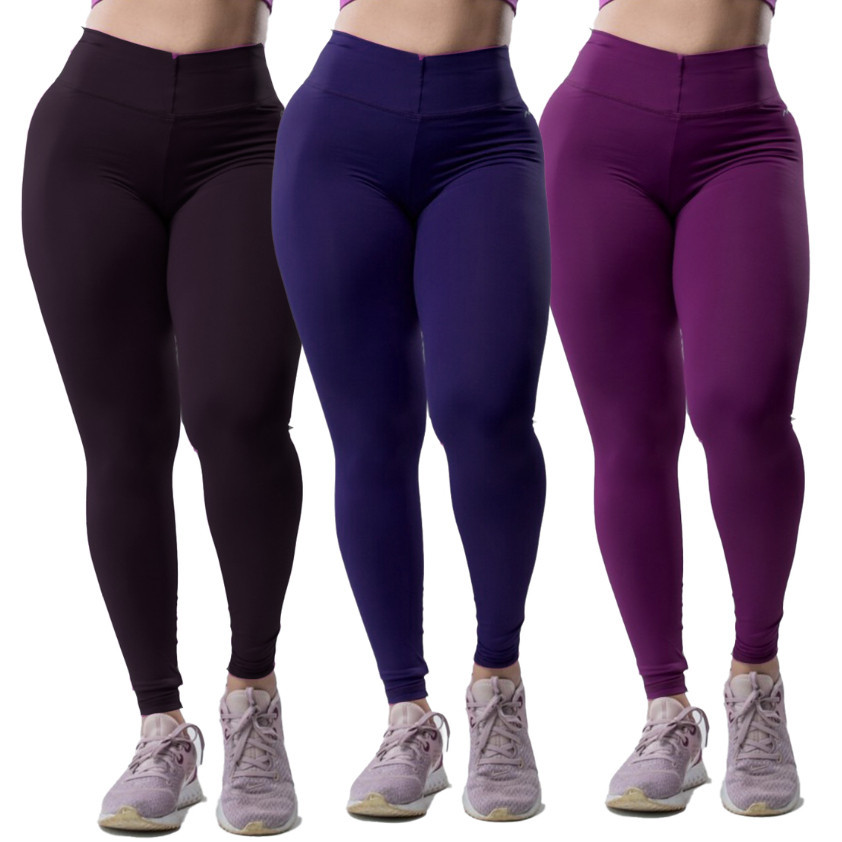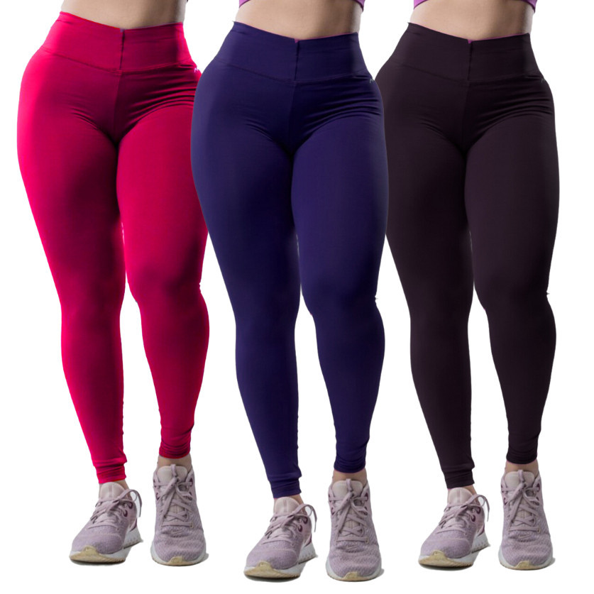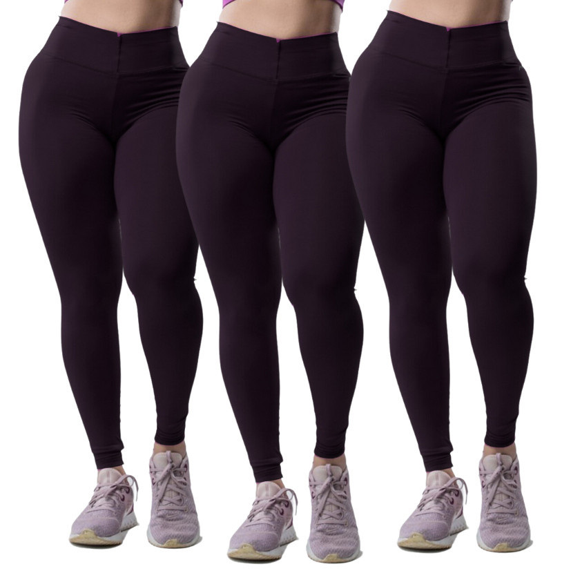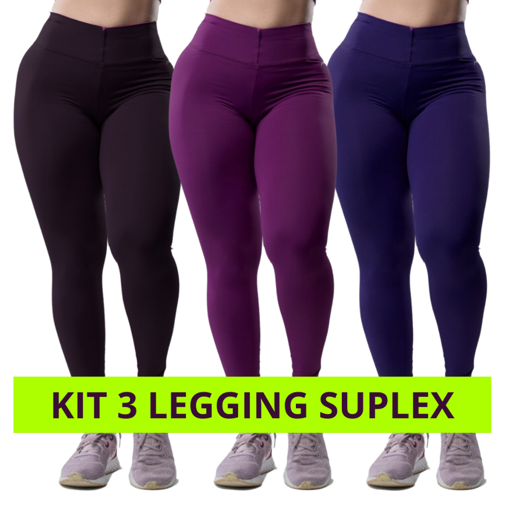 Calça Legging Feminina Academia Suplex Fitness Grossa kit 3 peças Pano com Compressão