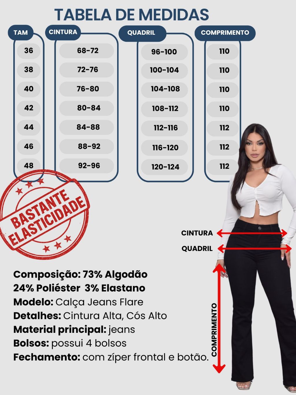 Calça Jeans Feminina cintura alta Flare Preta Basica com Elastano levanta Bumbum Moda Casual Premium