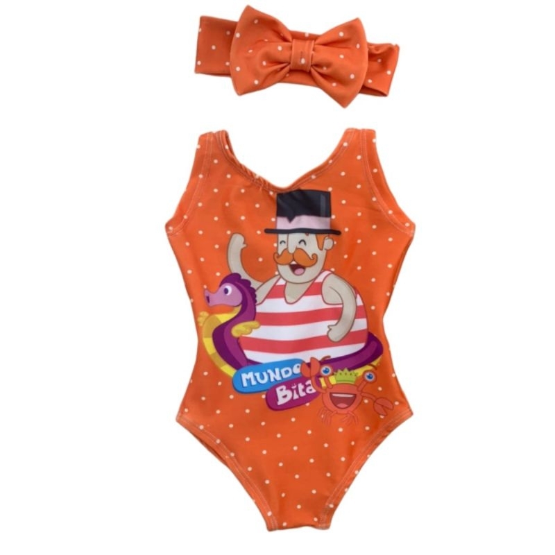 Maiô de Menina Body Personagem Infantil Bebê Biquini Criança Moda Praia Picina