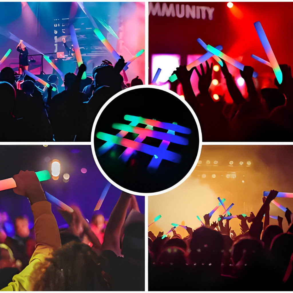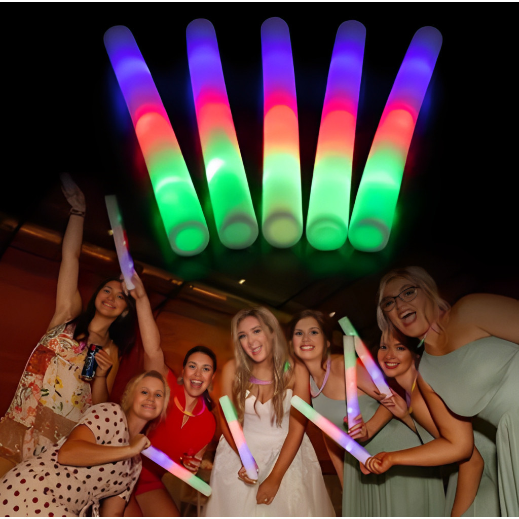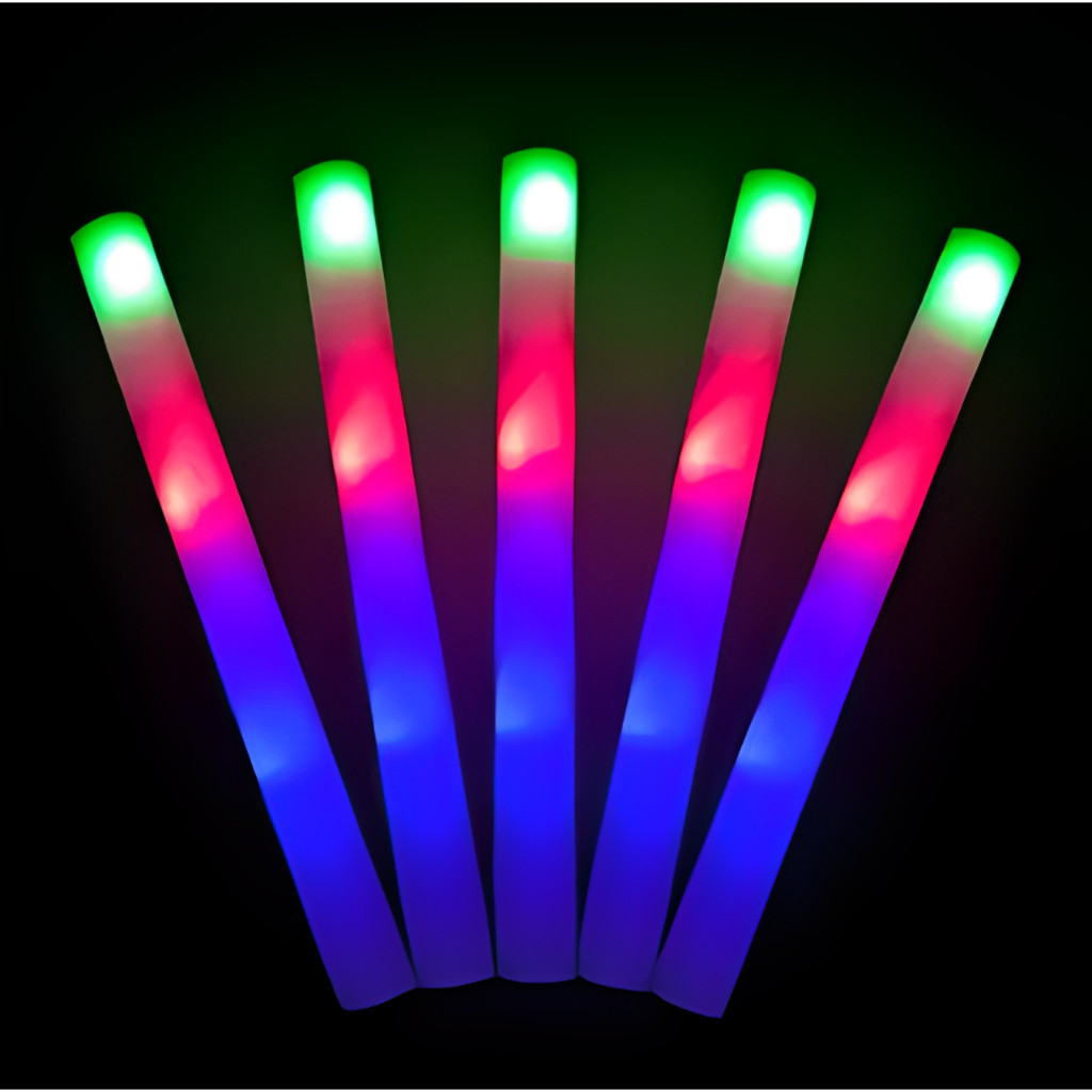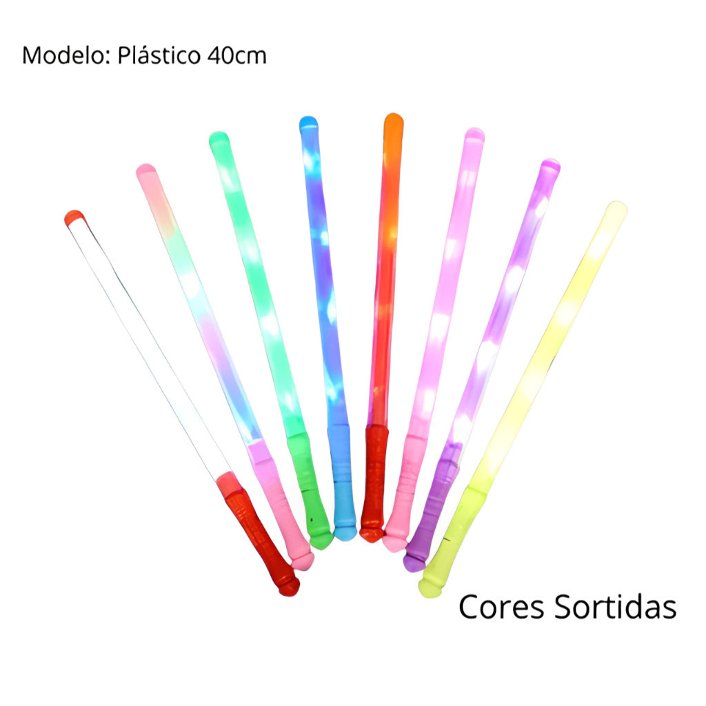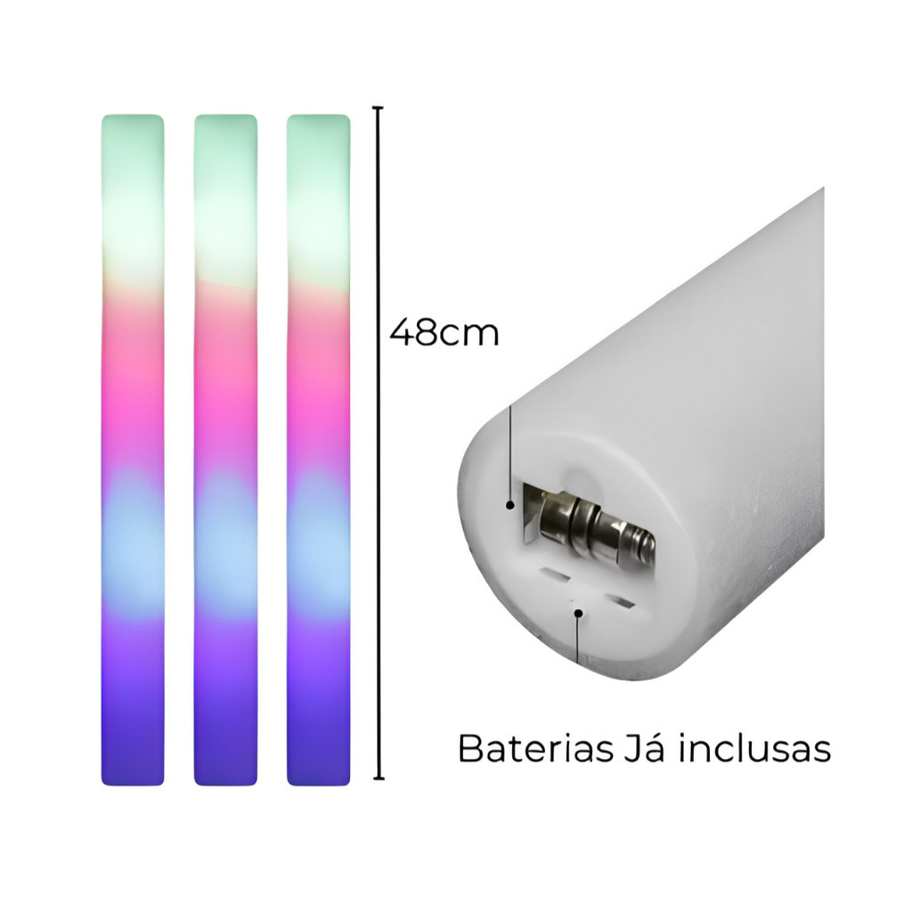 Kit 10/20/40 Bastão de Led Espuma/Plástico Neon 3 Fases - Festas Rave Casamento - Pisca Luz