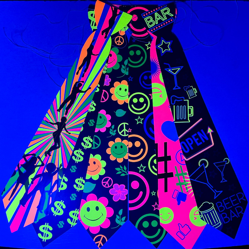 Kit 10/20/30 Unidades Gravatas Festa Balada Neon Brilha na Luz Negra