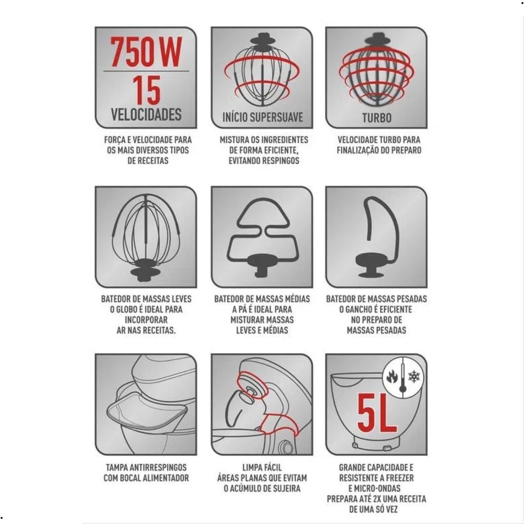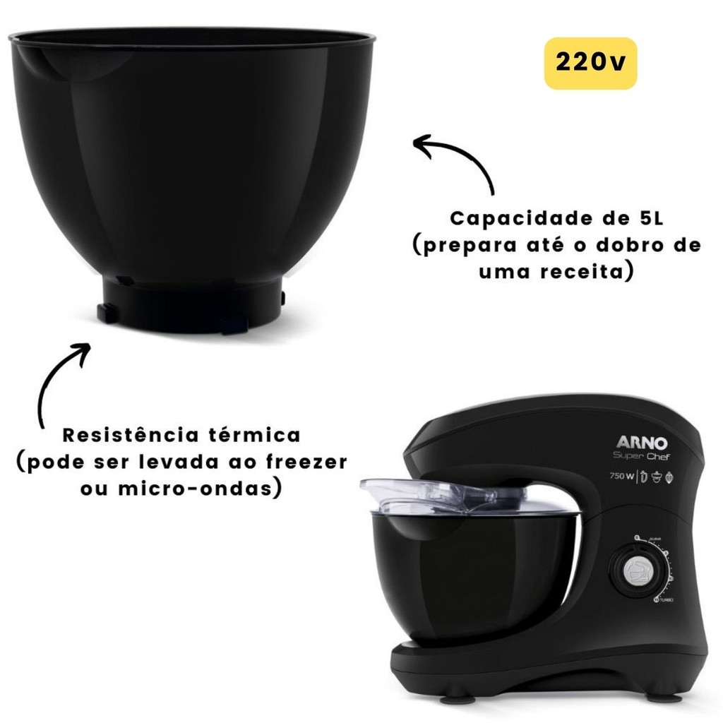 Batedeira Planetária Arno Super Chef 750W 5 litros 15 velocidades 220v