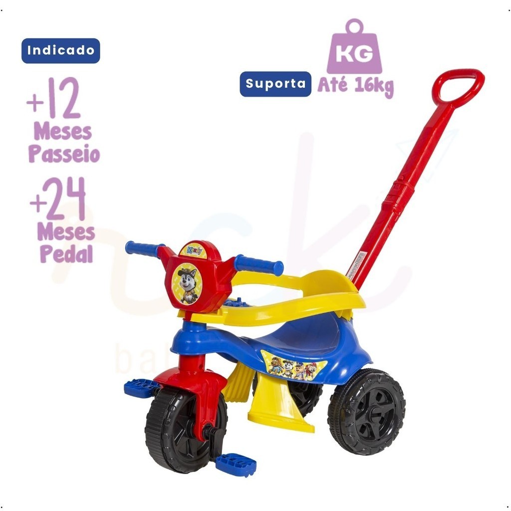 Triciclo Infantil de Empurrar Baby Dog Passeio e Pedal Motoca Kendy