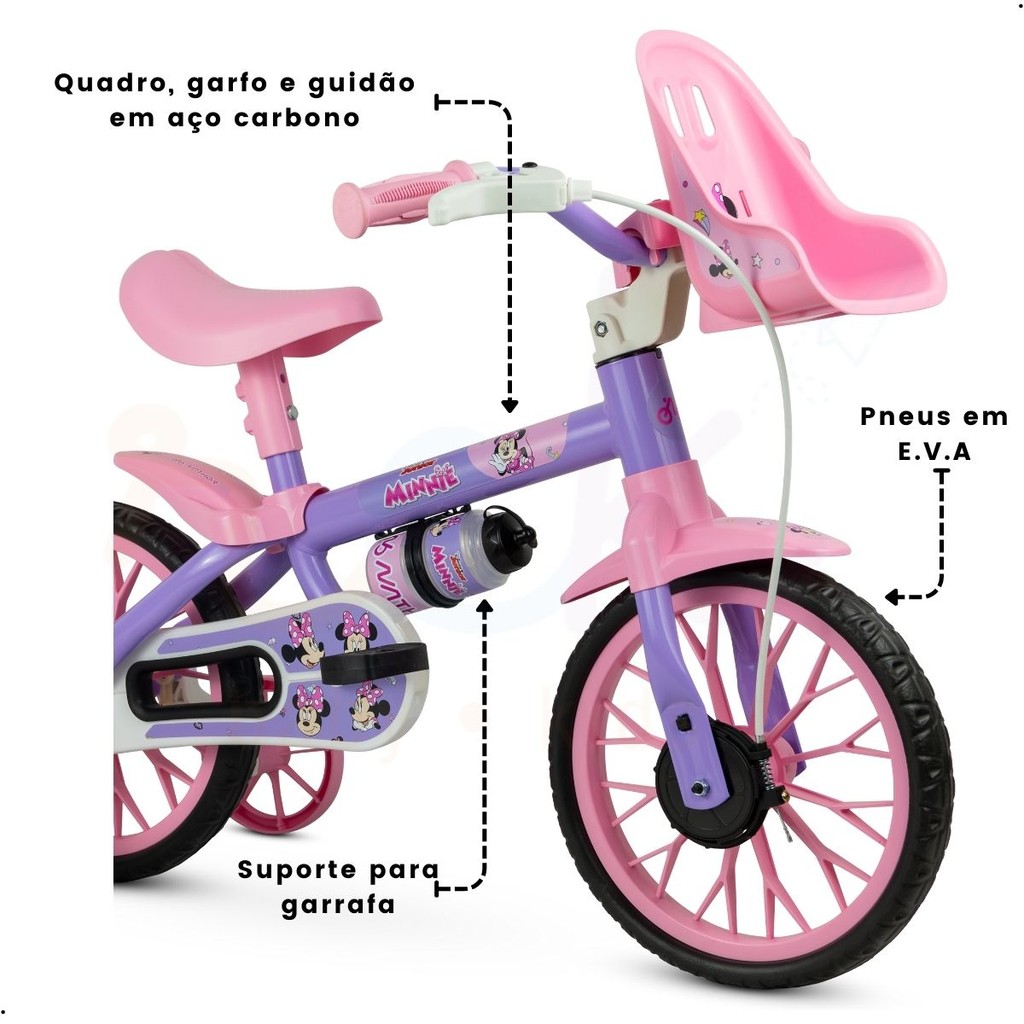 Bicicleta Minnie Infantil 3 anos Com rodinhas Nathor Aro 12