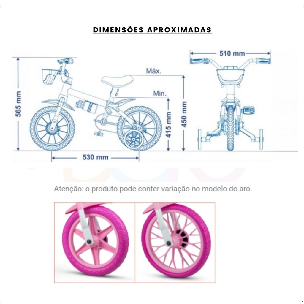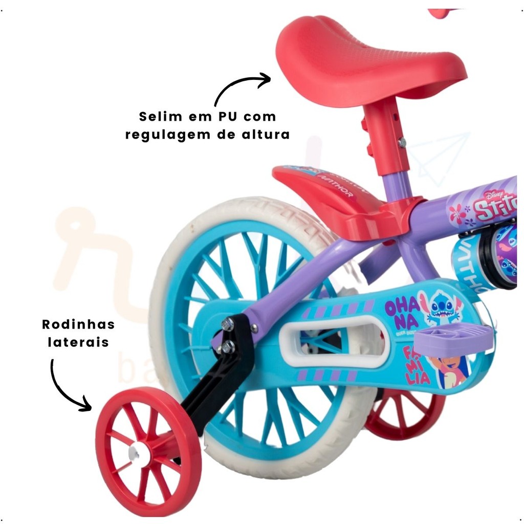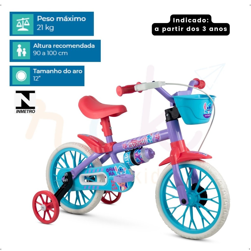 Bicicleta Infantil Stitch Disney Com Rodinhas E Garrafinha Aro 12 Nathor Até 21kg