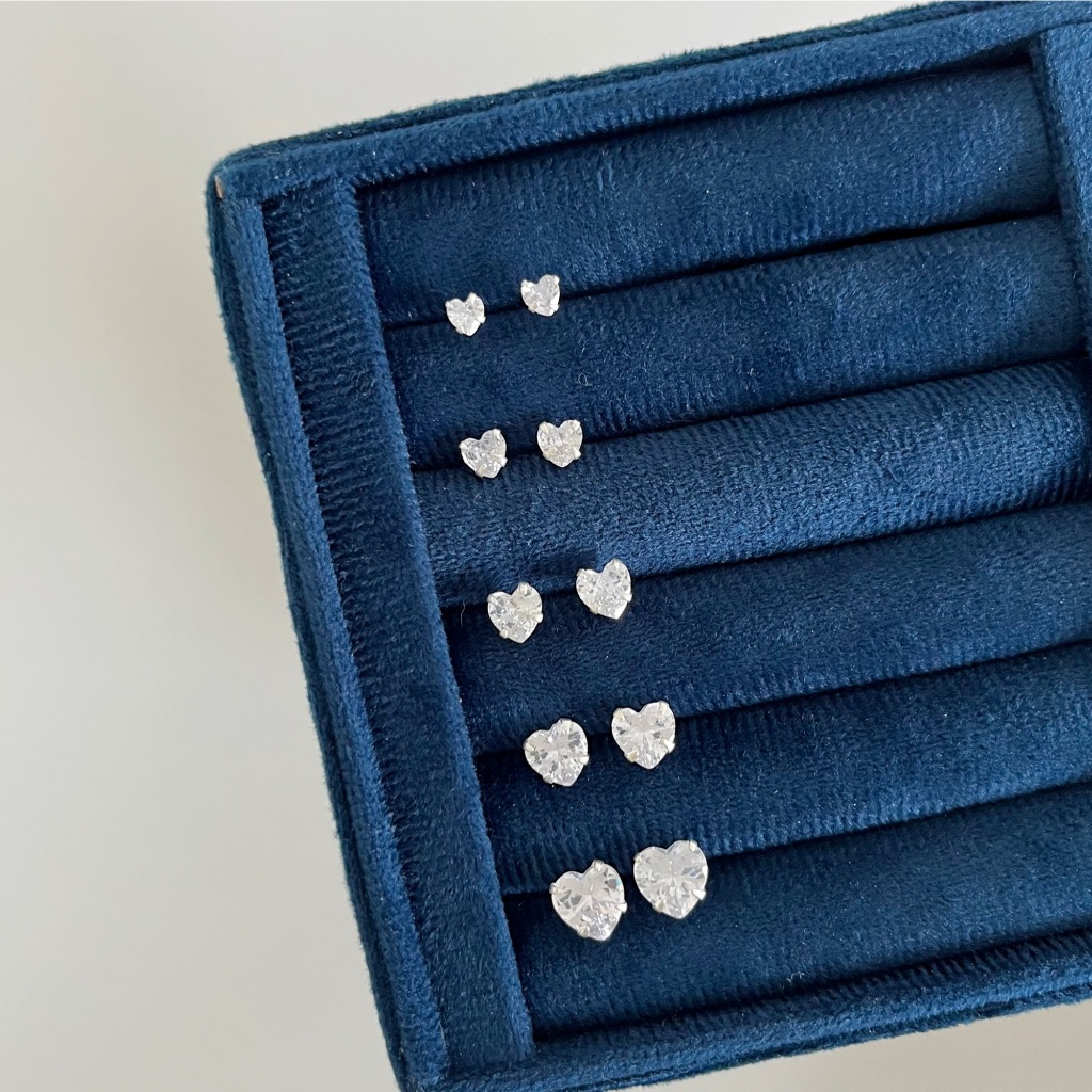Kit 05 Brincos de Prata 925 Legítima Zircônias Corações