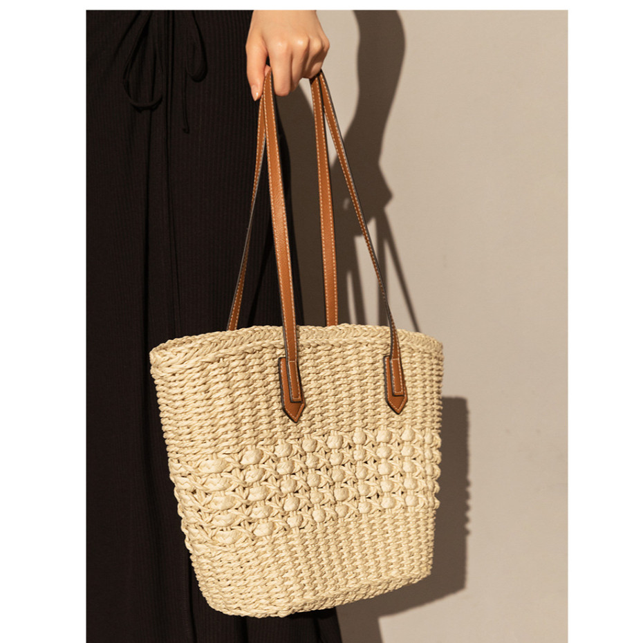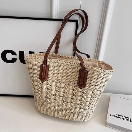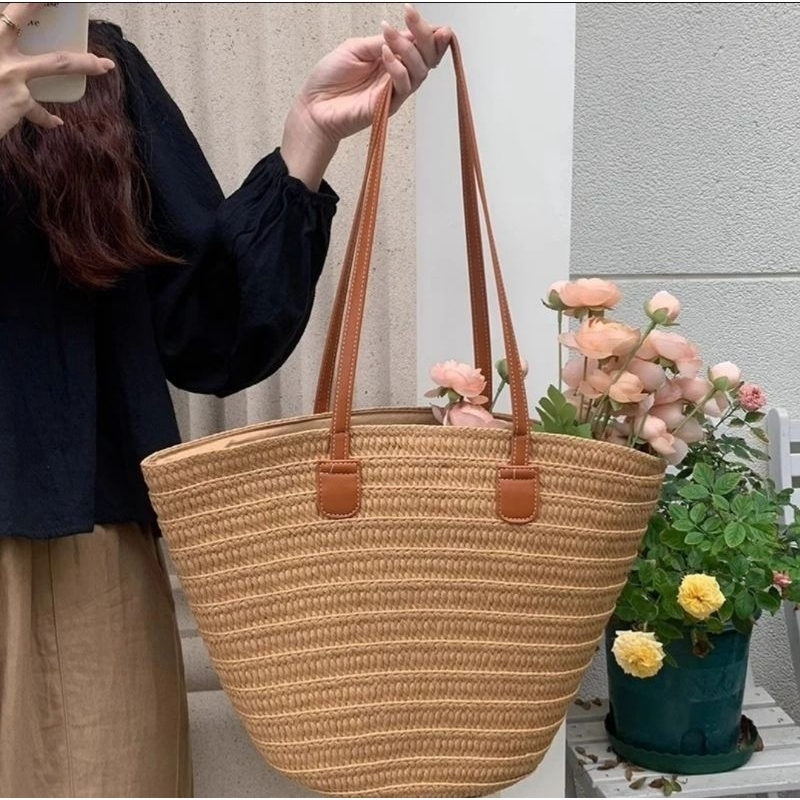 Saco Palha Grande Capacidade Nicho Francês Verão Portátil Para Ombro