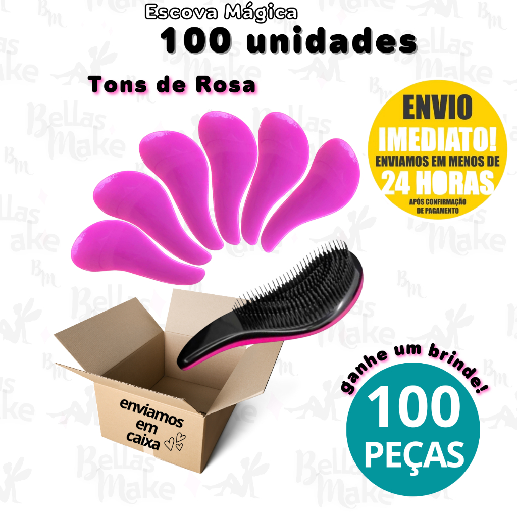 Kit Com 100 Escovas Mágicas Anti Frizz Desembaraçadora Escolha sua Cor Para Revender