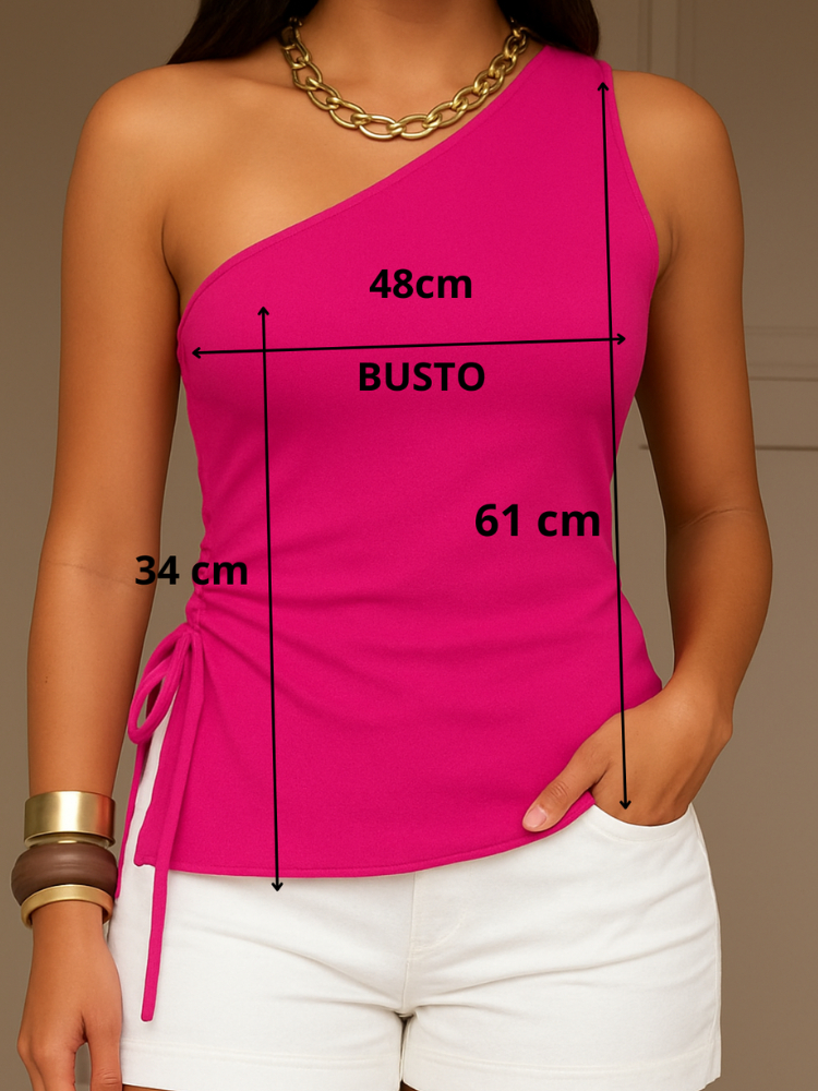 Blusa de Uma Manga Só Feminina Elegante Verão Assimétrica Drapeada Tecido Canelado Blusinha Casual