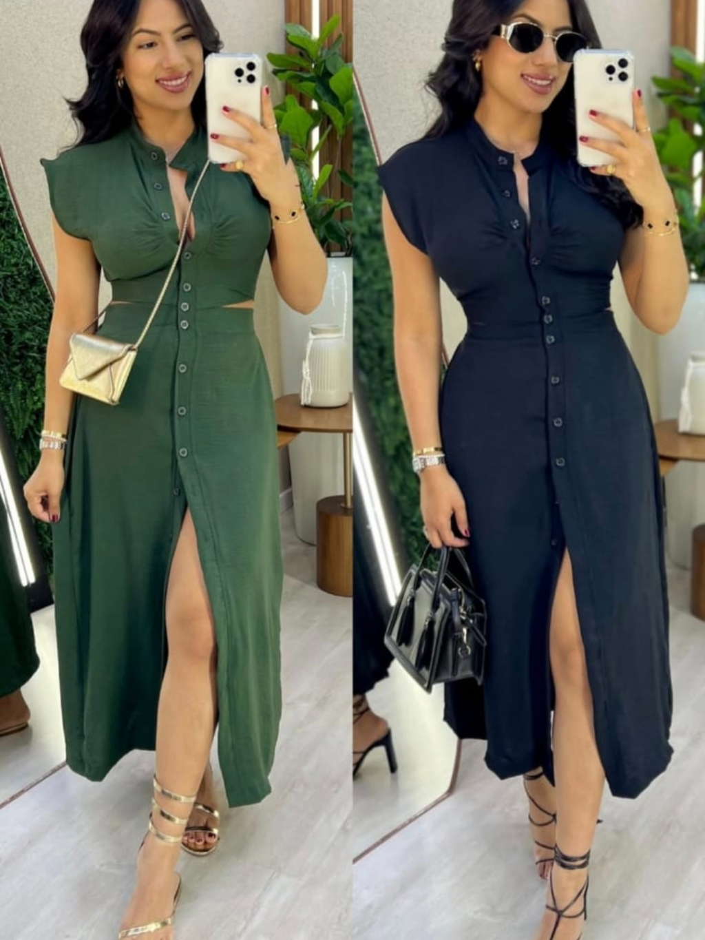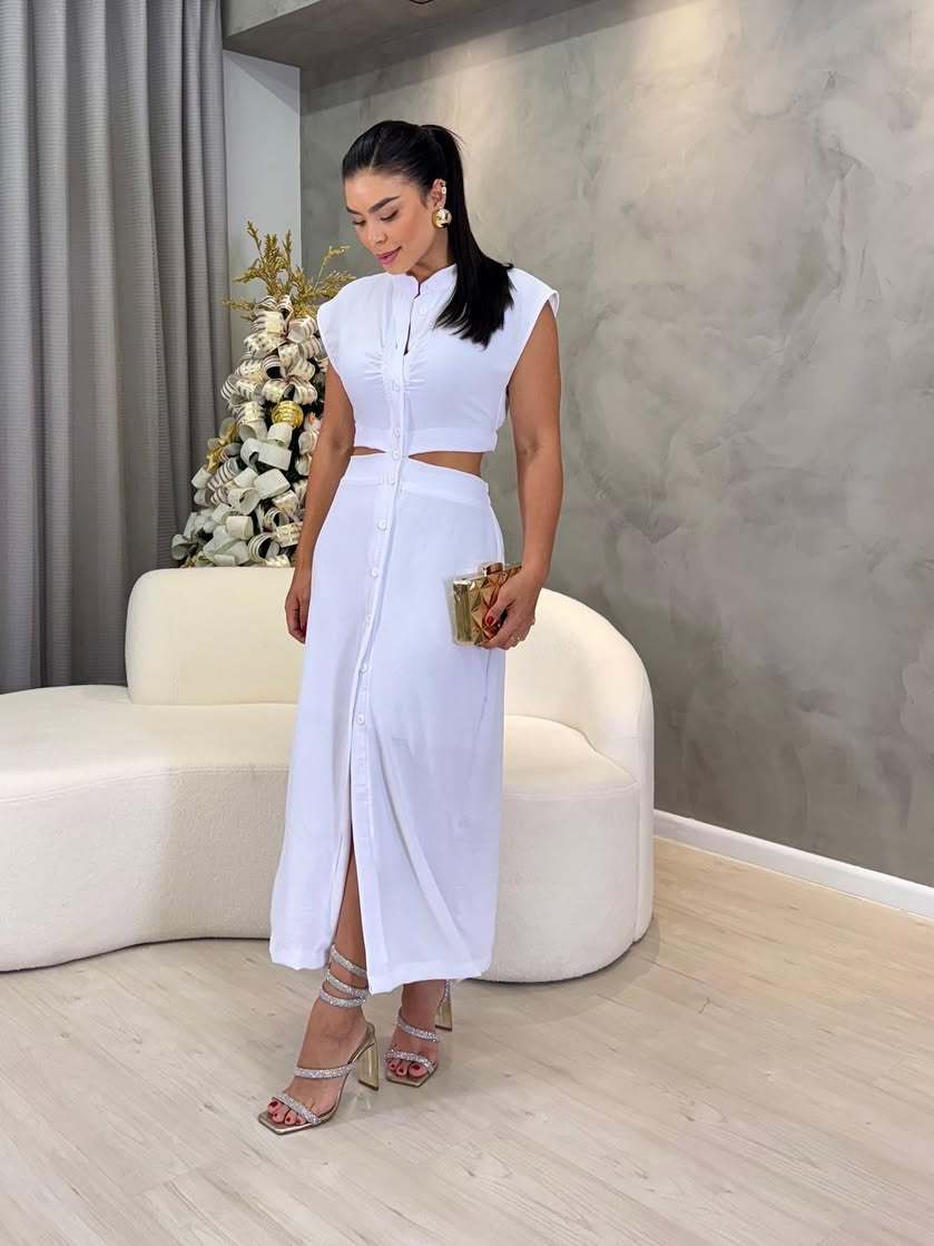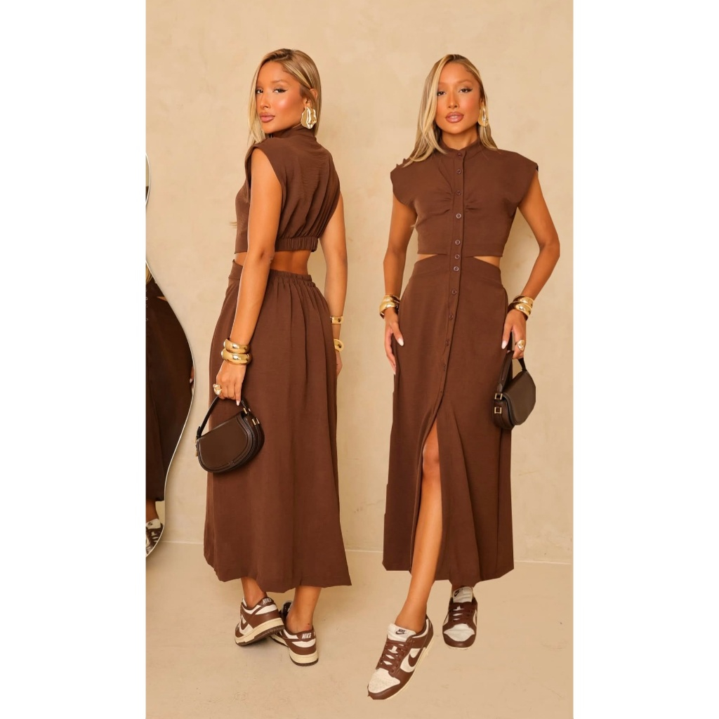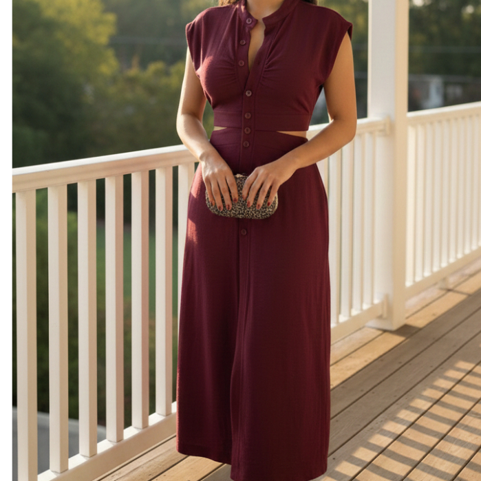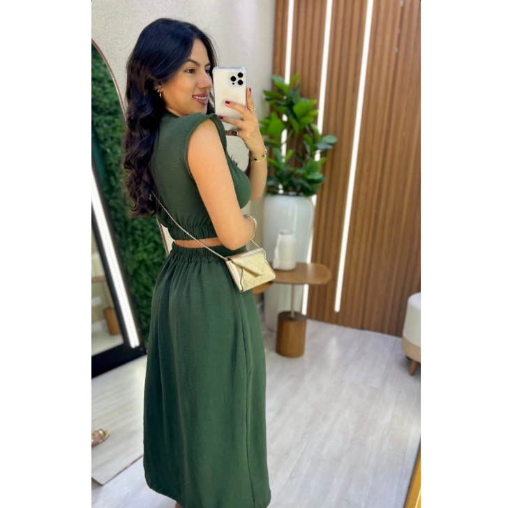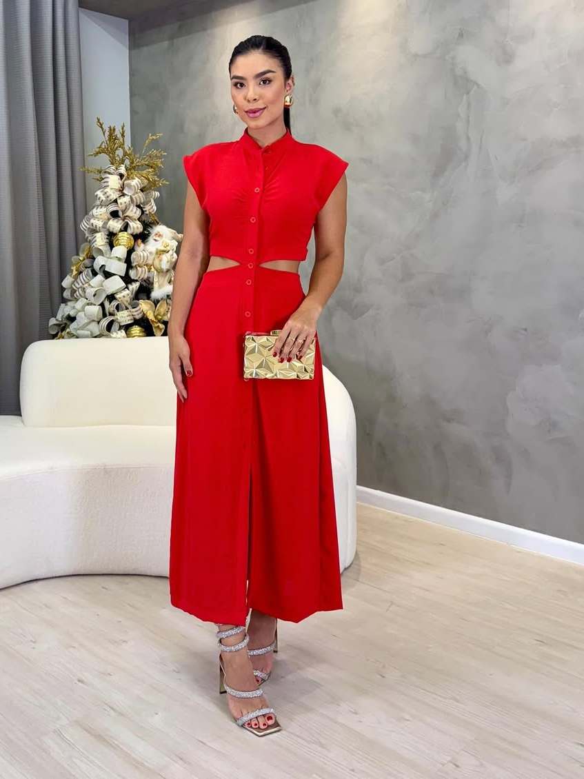 Vestido Midi Cut Out Com Botões Funcionais Forrado Sem Bojo Casual Elegante Do Tênis Ao Salto Casual Elegante Confortáve