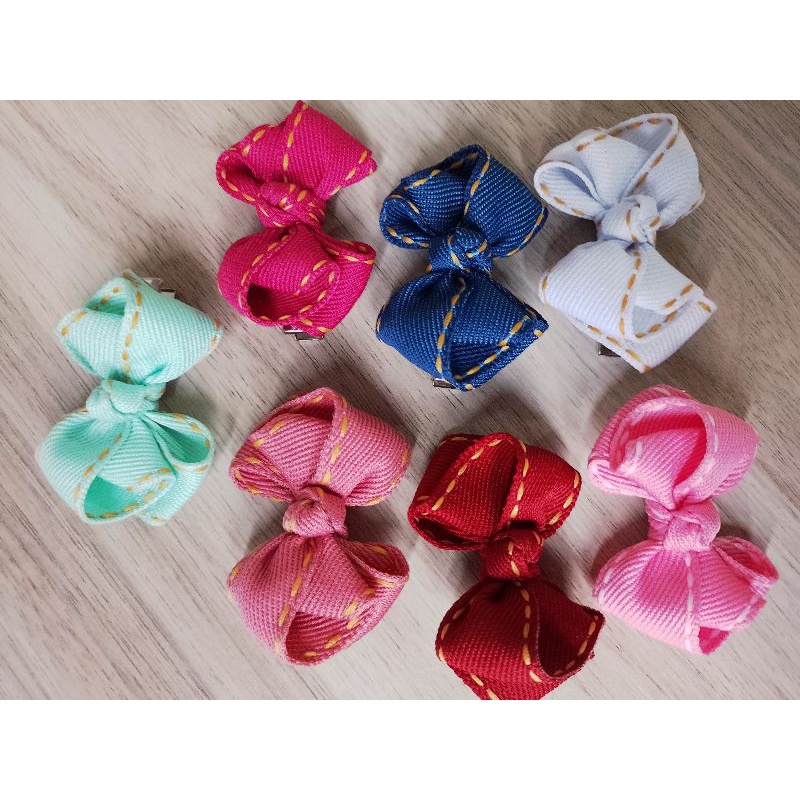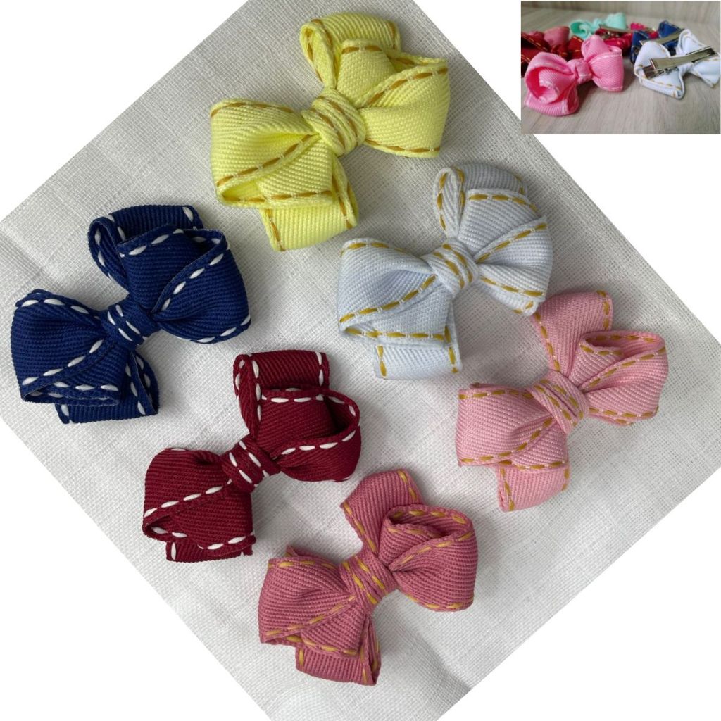 Kit 6 Laços Jeans infantil no Bico de Pato