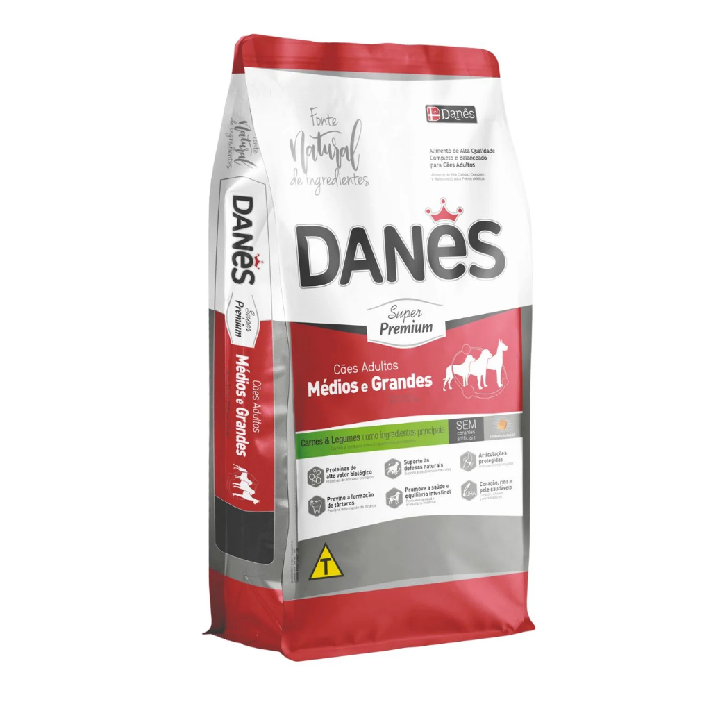 Ração Cães Super Premium Danes Medias e Grandes Carne Batata Doce e legumes 15kg