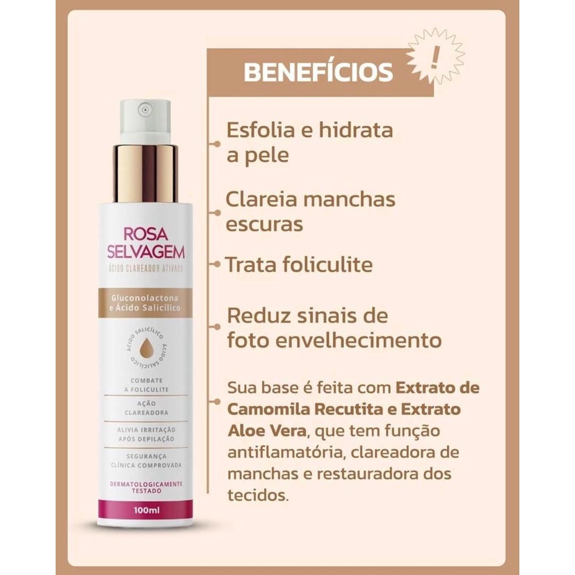 ( COMPRE 2 LEVE 3 ) Rosa selvagem Ácido 8x mais rápido - clareia manchas e elimina foliculite