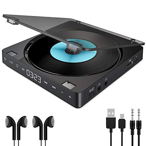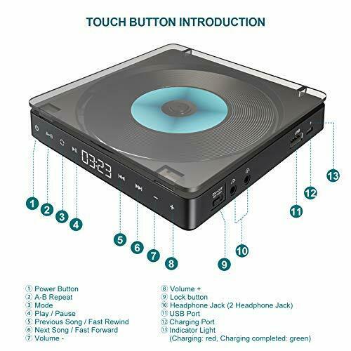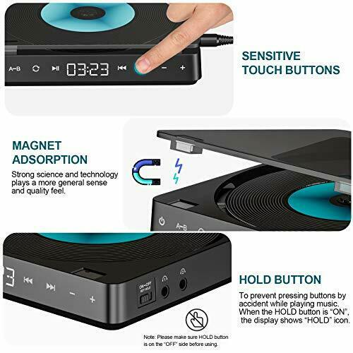 CD Player Portátil Recarregável 1200mAh Botão Touch Bateria Disk Preto Novo