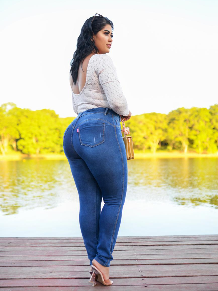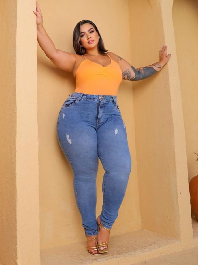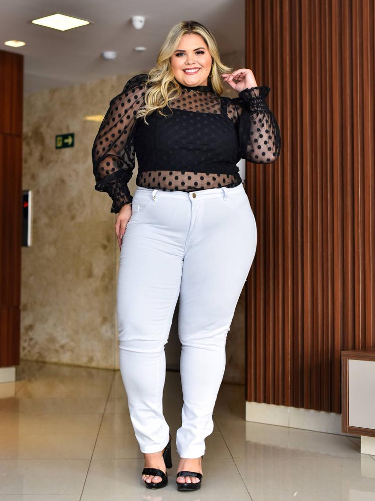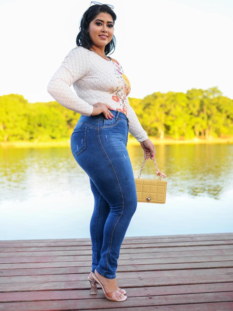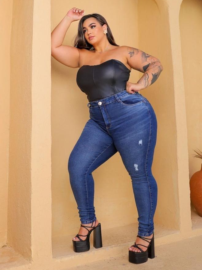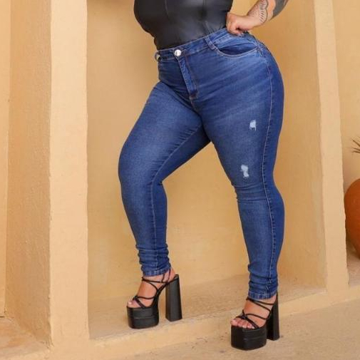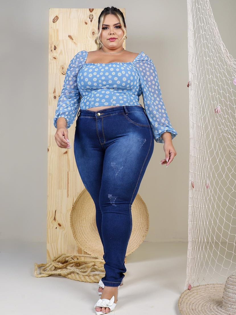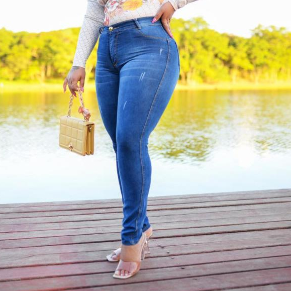 CALÇA PLUS SIZE MODA MAIOR JEANS FEMININA COM ESLASTANO