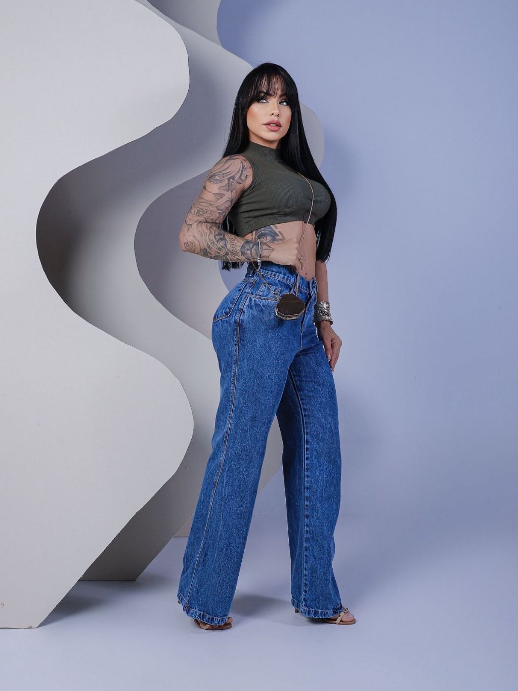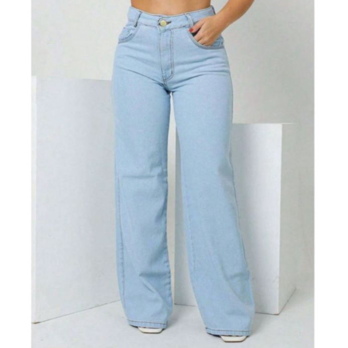 CALÇA WIDE LEG JEANS 100% ALGODÃO CINTURA ALTA OFF WHITE PANTALONA CALÇA DE BLOGUEIRA