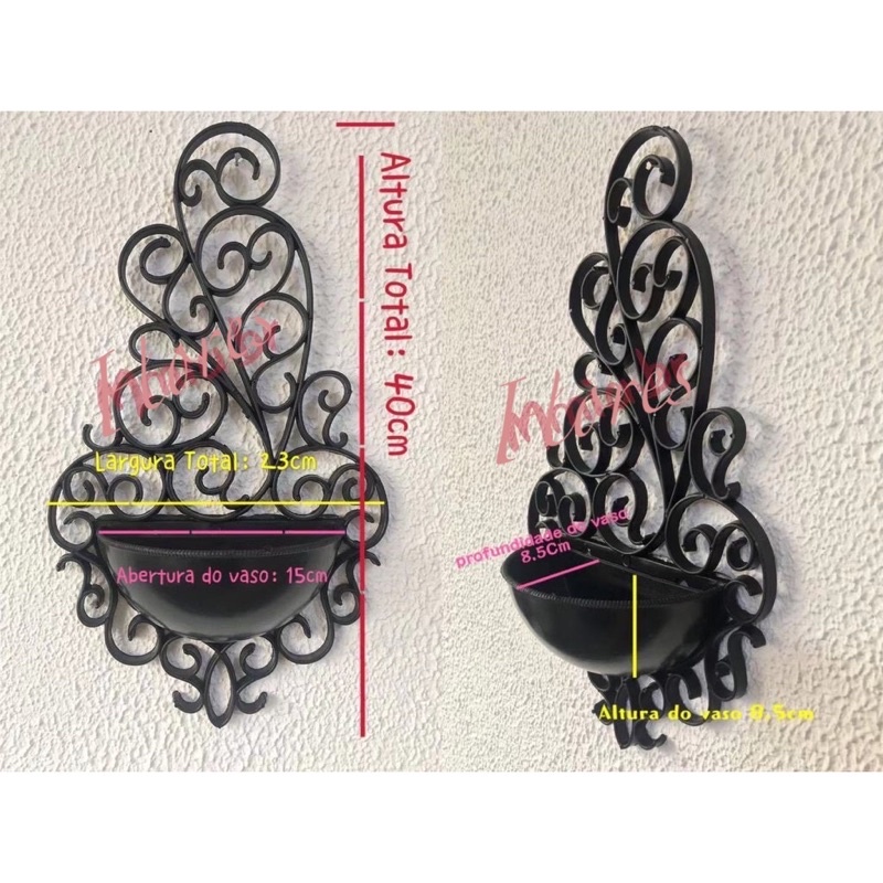 Kit com 2 Vaso Provençal Arandela de Parede Preto Decoração Planta jardim