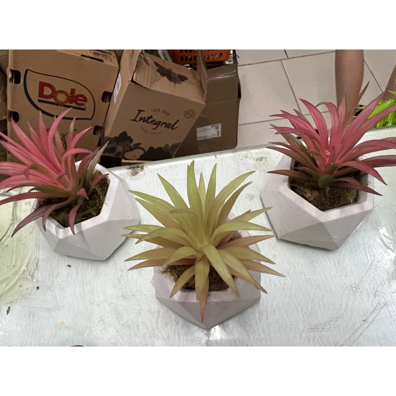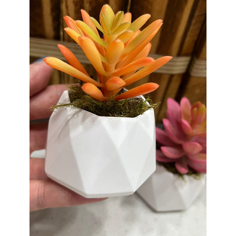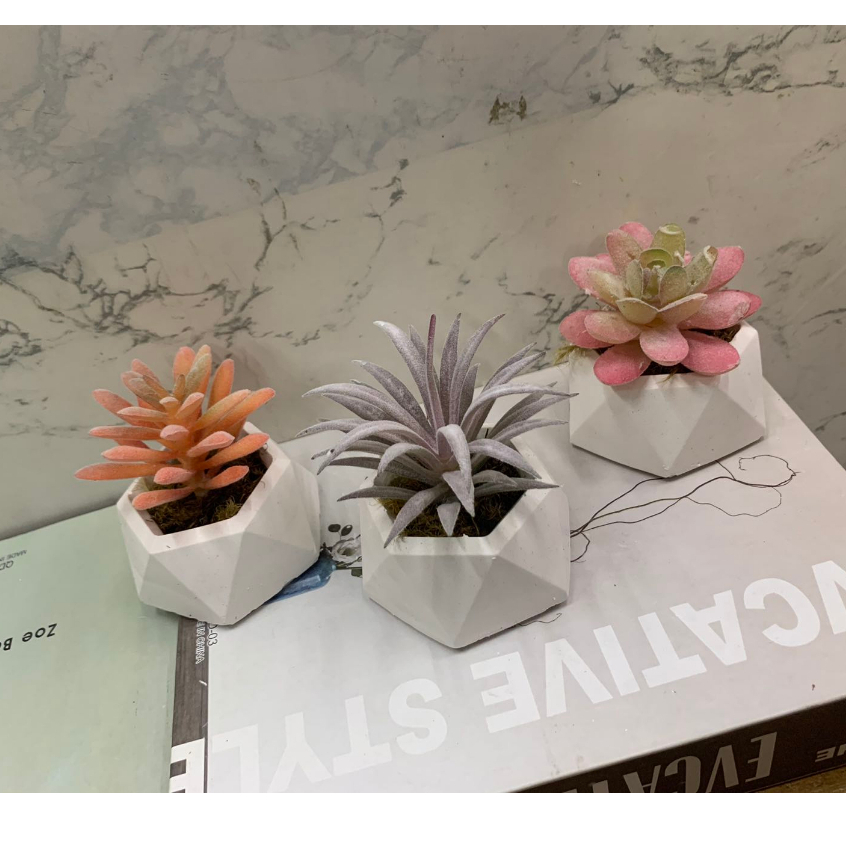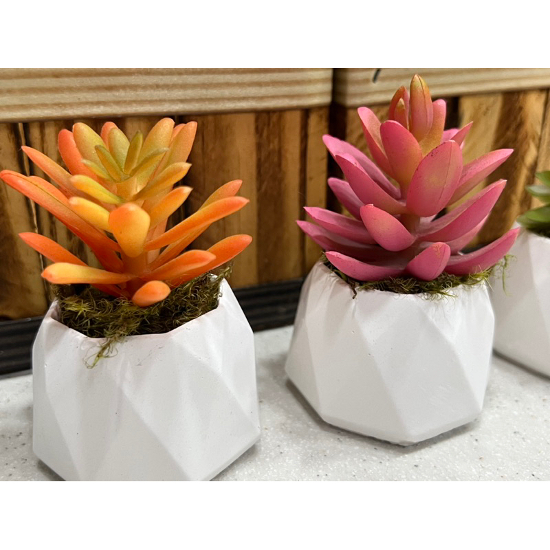 Kit c/ 3 arranjos suculenta artificial vaso de gesso(Tricolor)