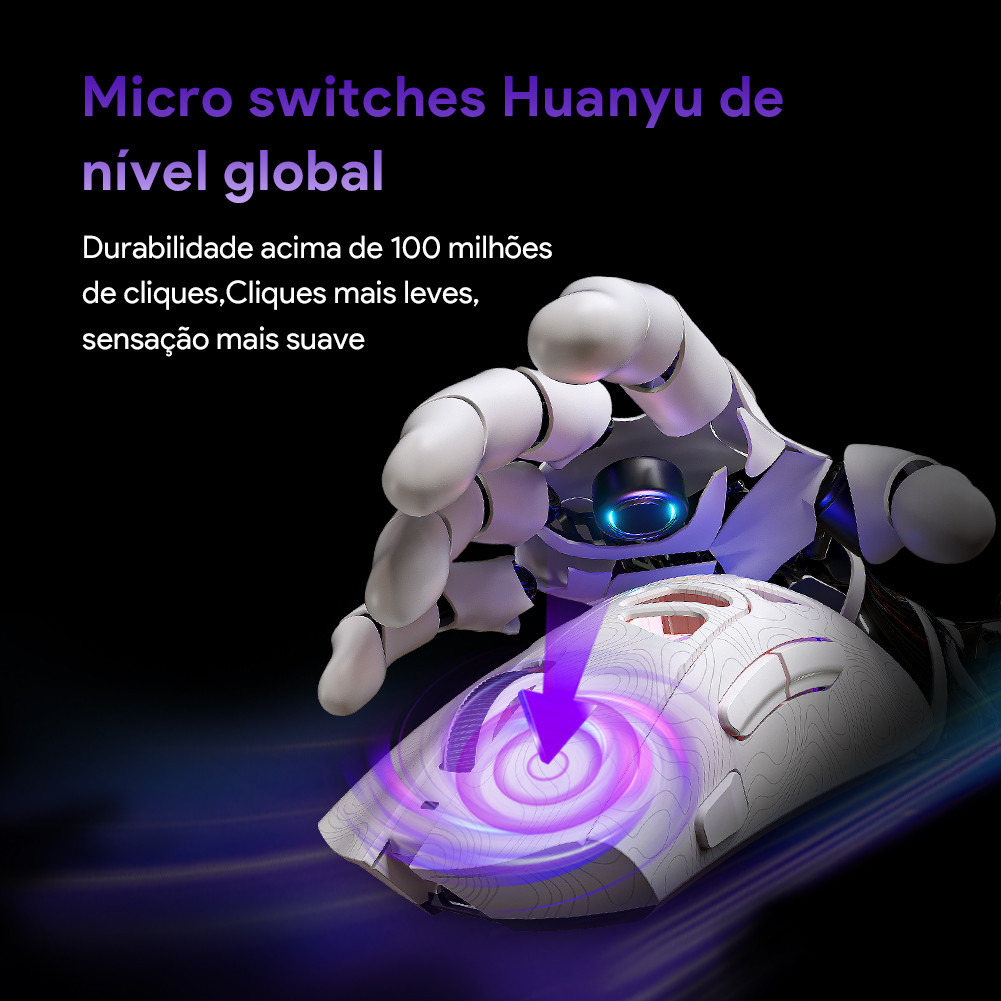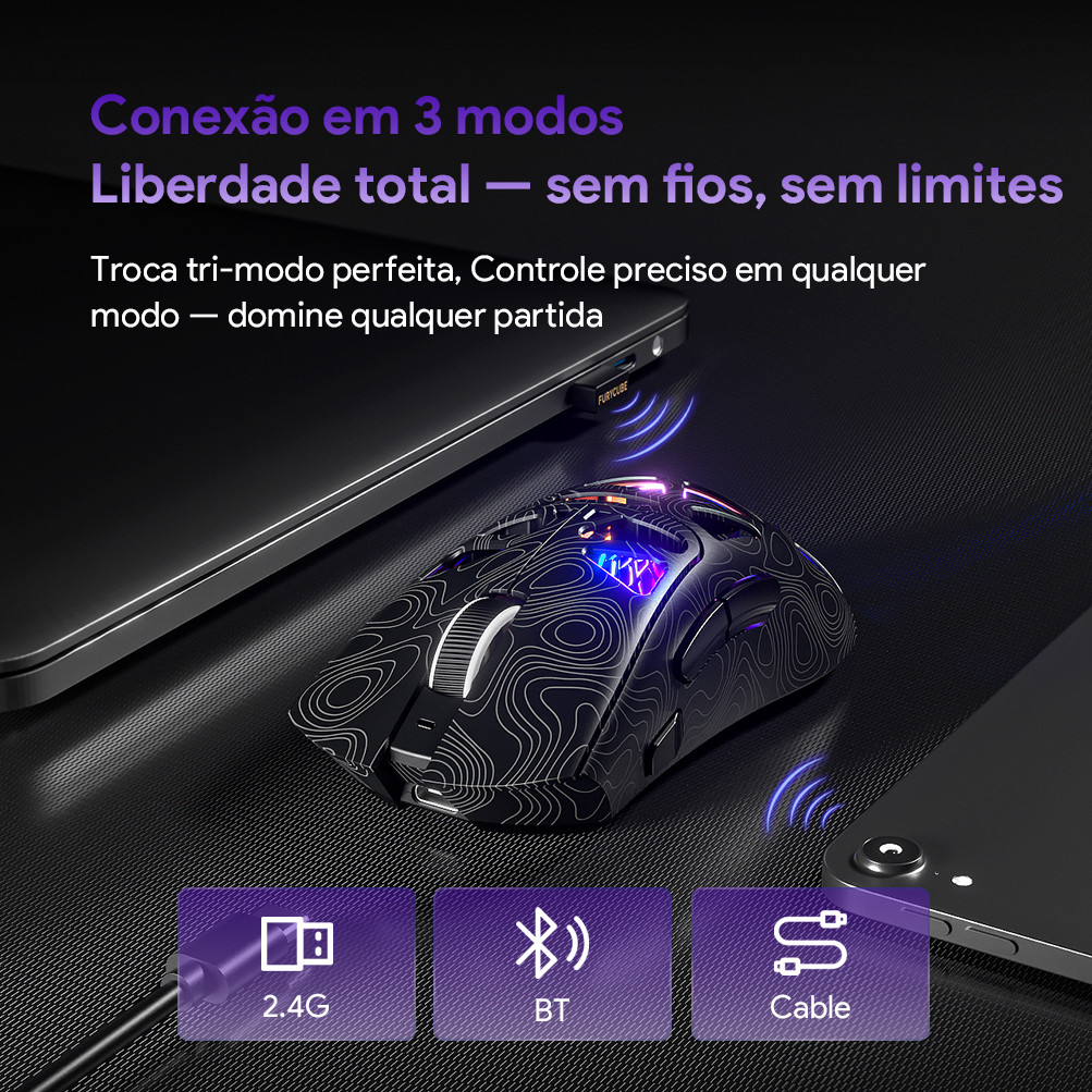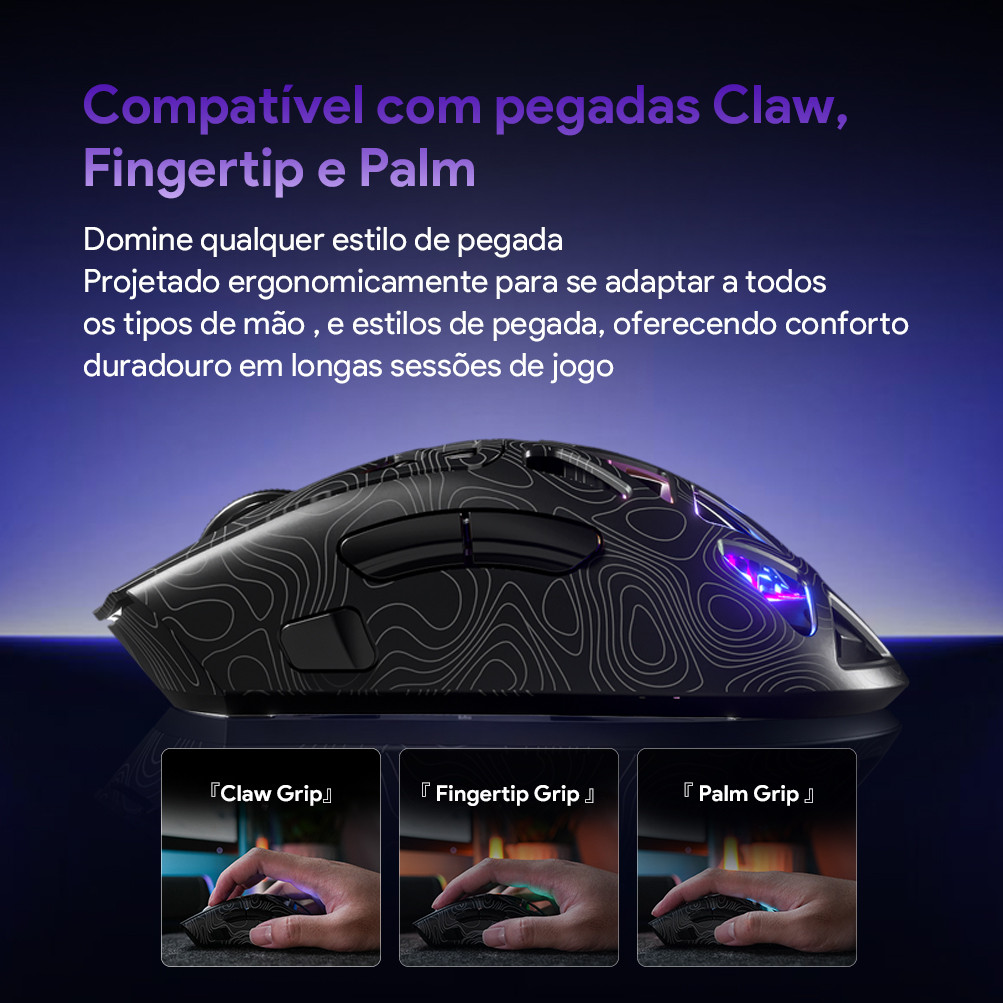 Mouse gamer ultraleve 59g design vazado com linhas de contorno 22000 DPI botao macro BLUTOOTH 2.4G