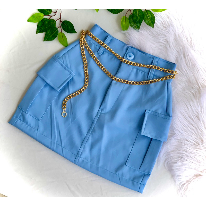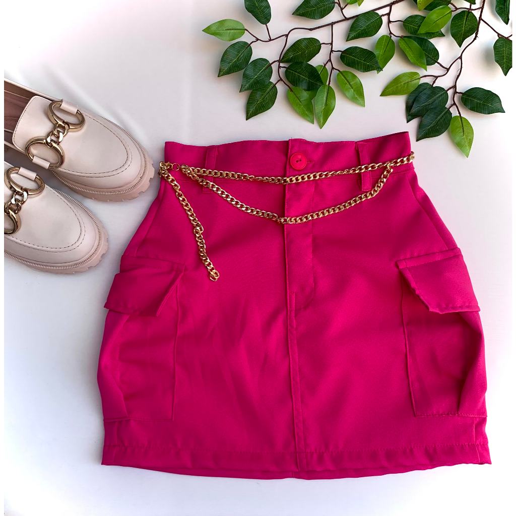 saia cargo alfaiataria cintura alta curta com bolsos na lateral do PP ao G2