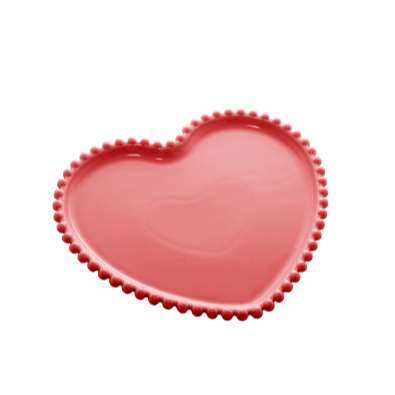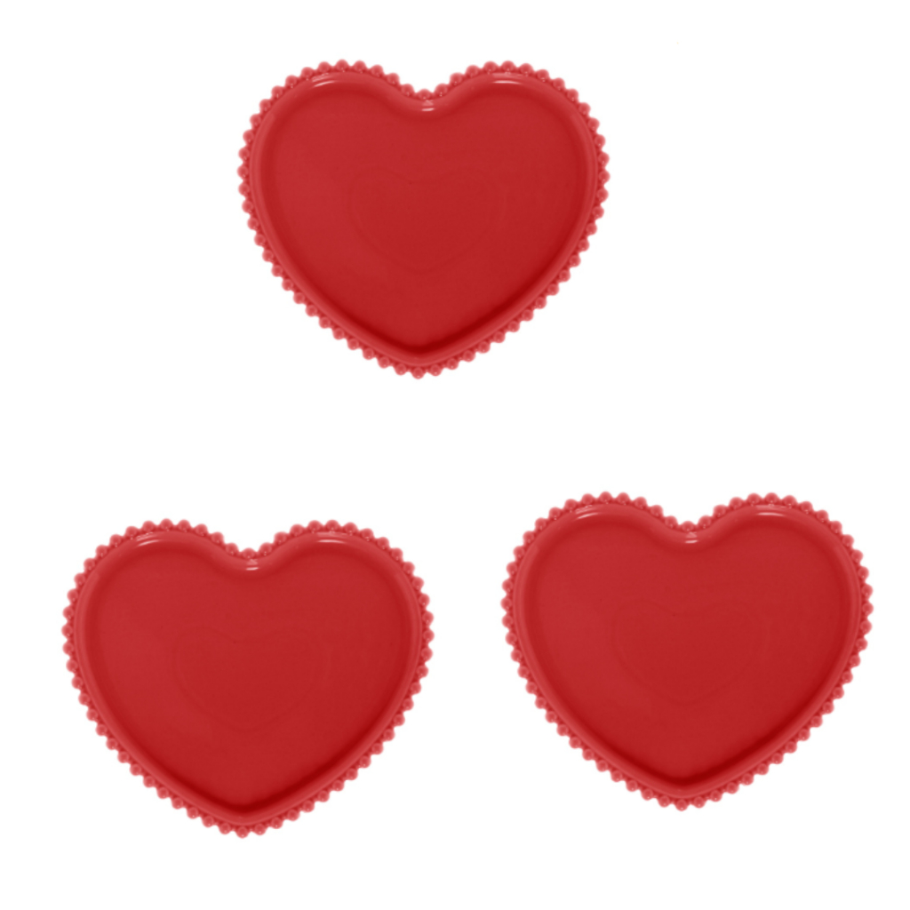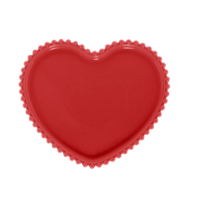 Prato formato coraçaoa Acrílico com borda de bolinhas Vermelho 25cm x 22 cm x 2cm