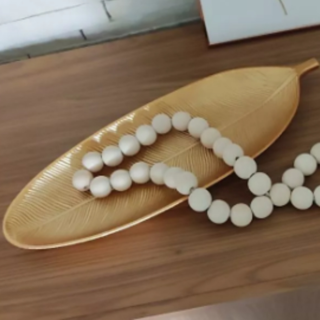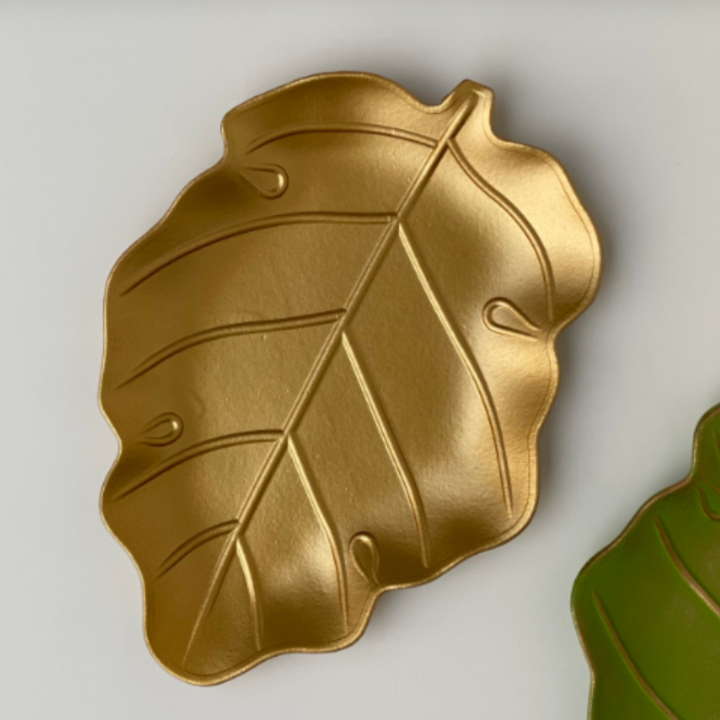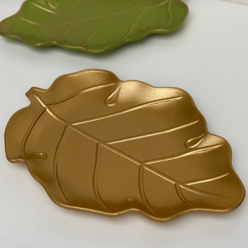 ENFEITE FOLHA bandeja sextavada Dourada Bandeja Mdf P/decoração 40X13CM