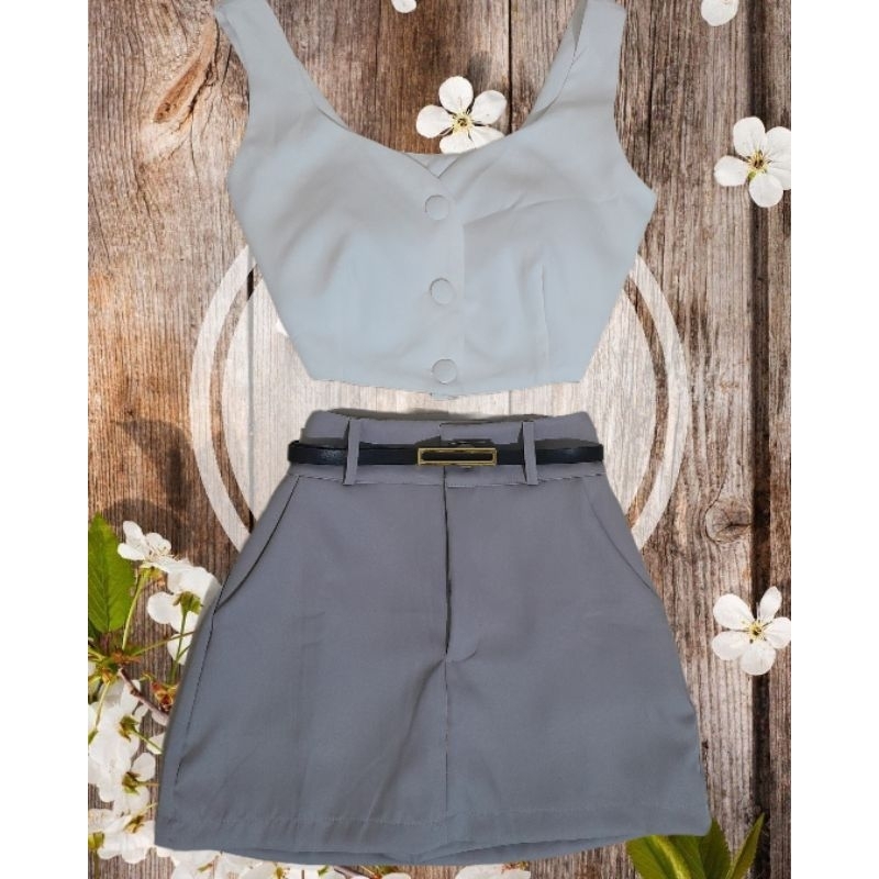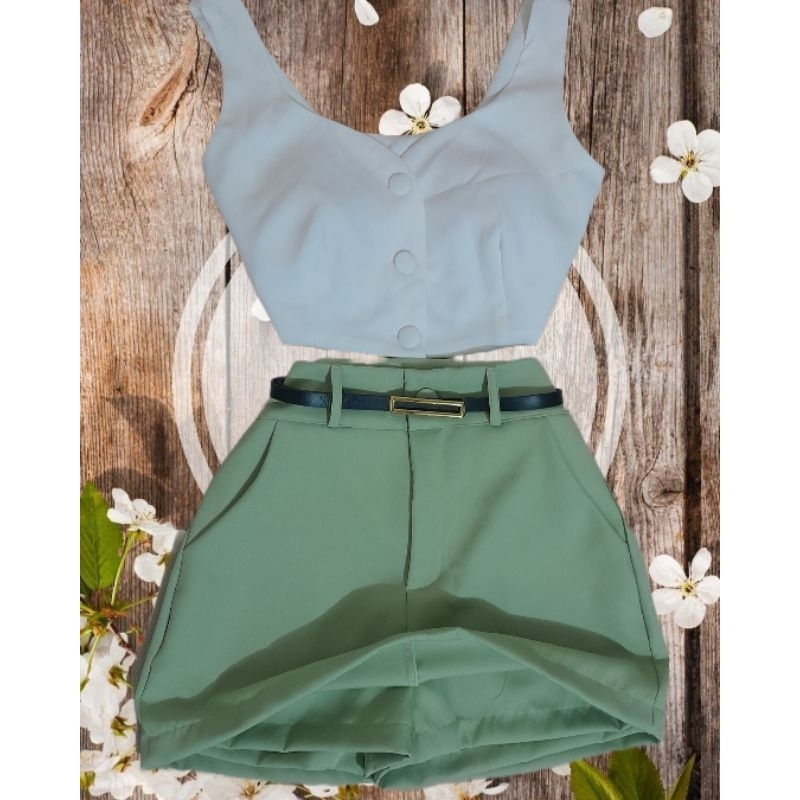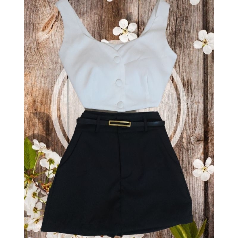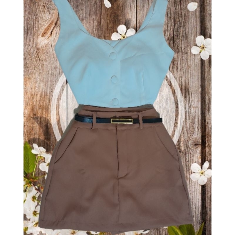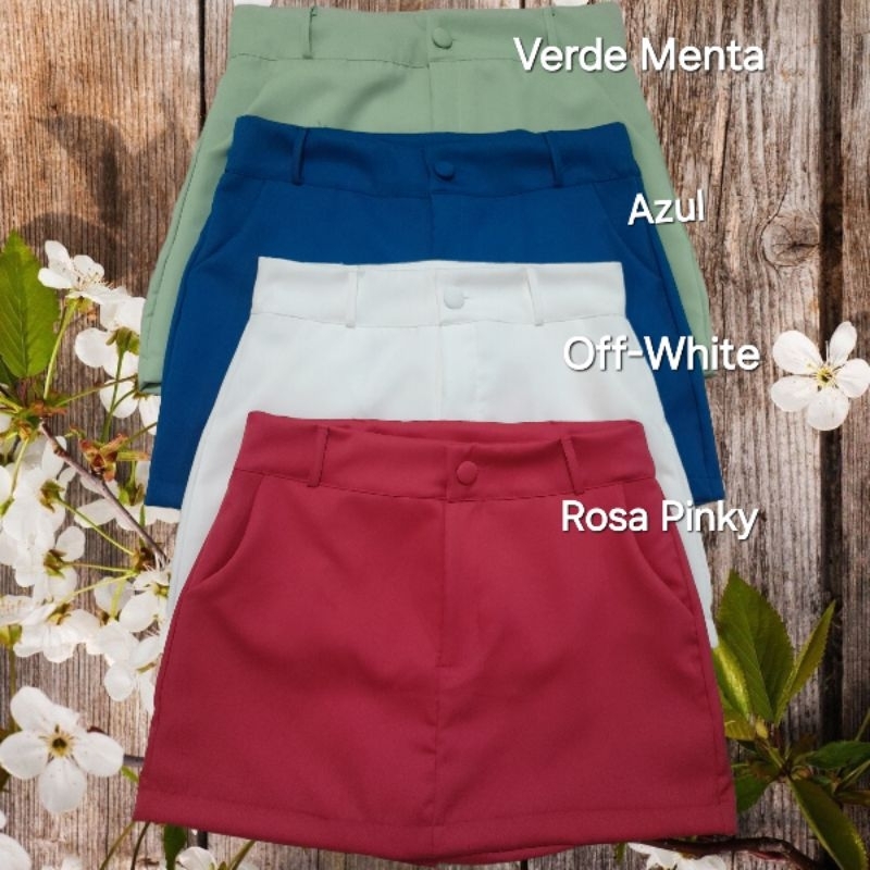 Shorts Saia Social Feminina Alfaiataria Cintura Alta com Cinto e bolso