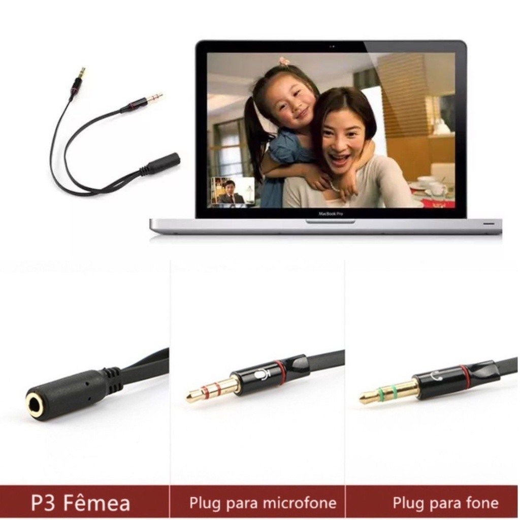 Cabo De Áudio Adaptador 1 - P3(fêmea) X 2 - P2(macho)
