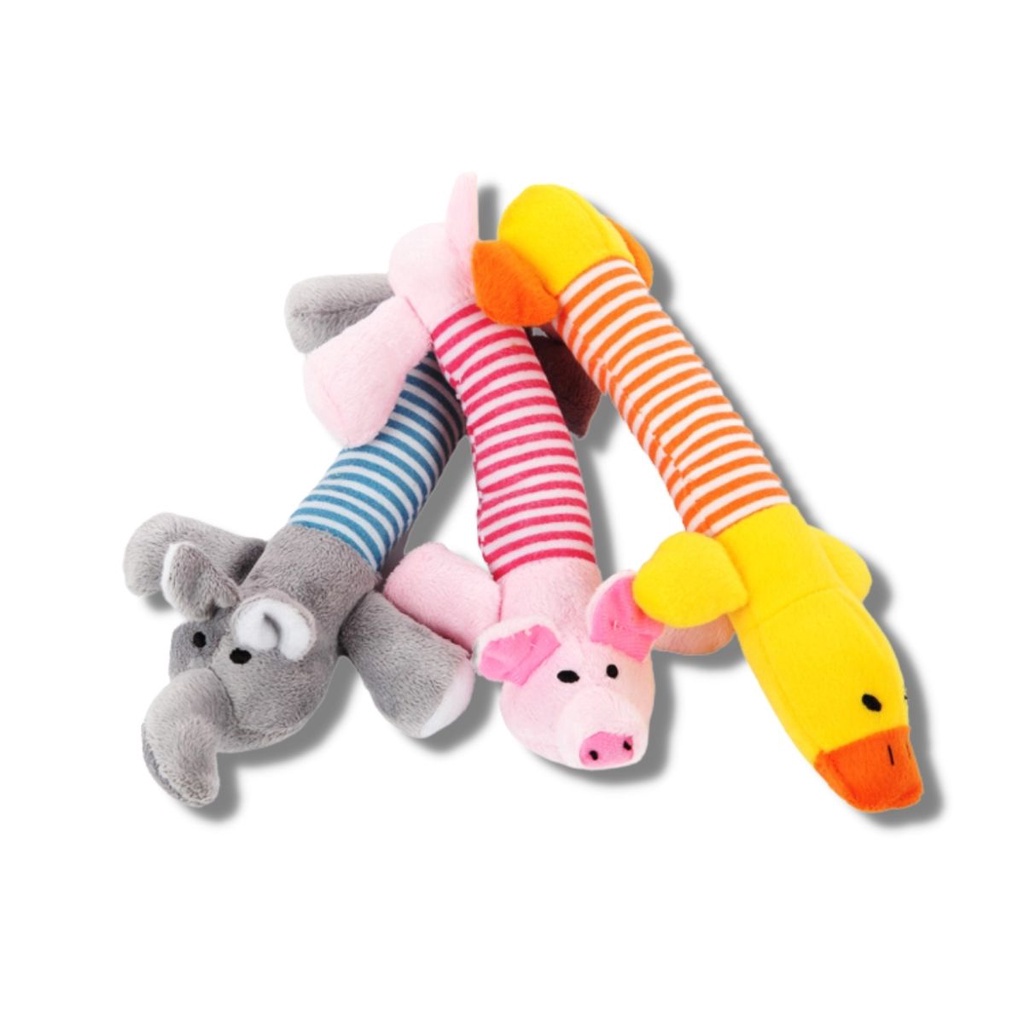 Brinquedo de Pelúcia para Cachorro Gato Pet Bichinho com Apito Som Elefante Pato Porco