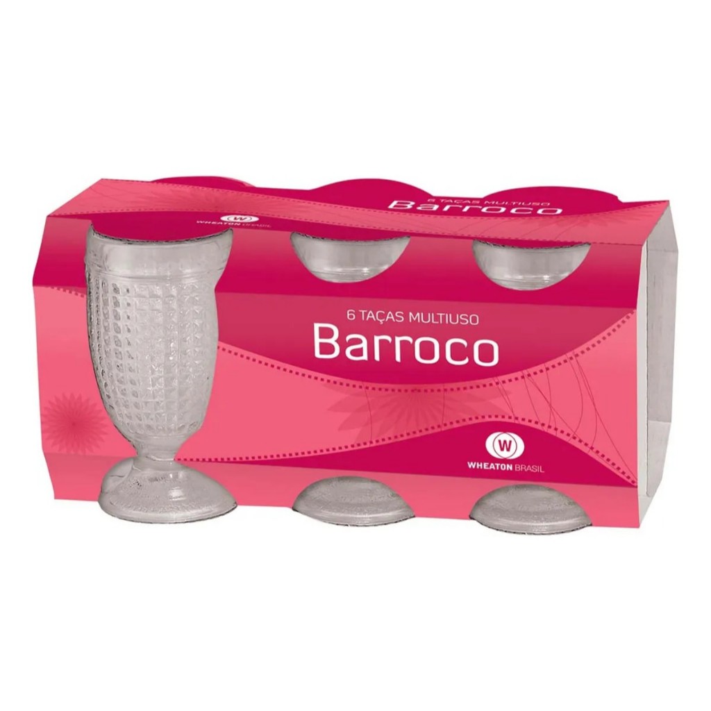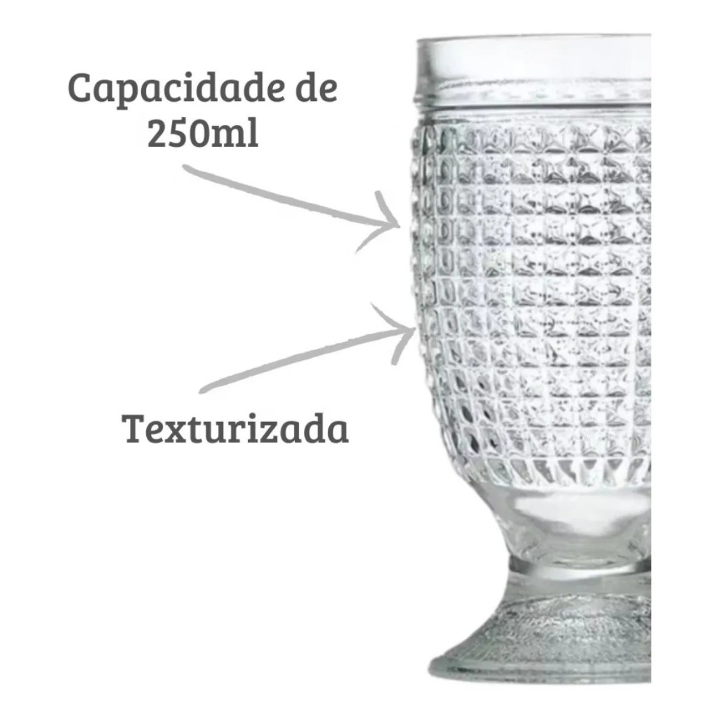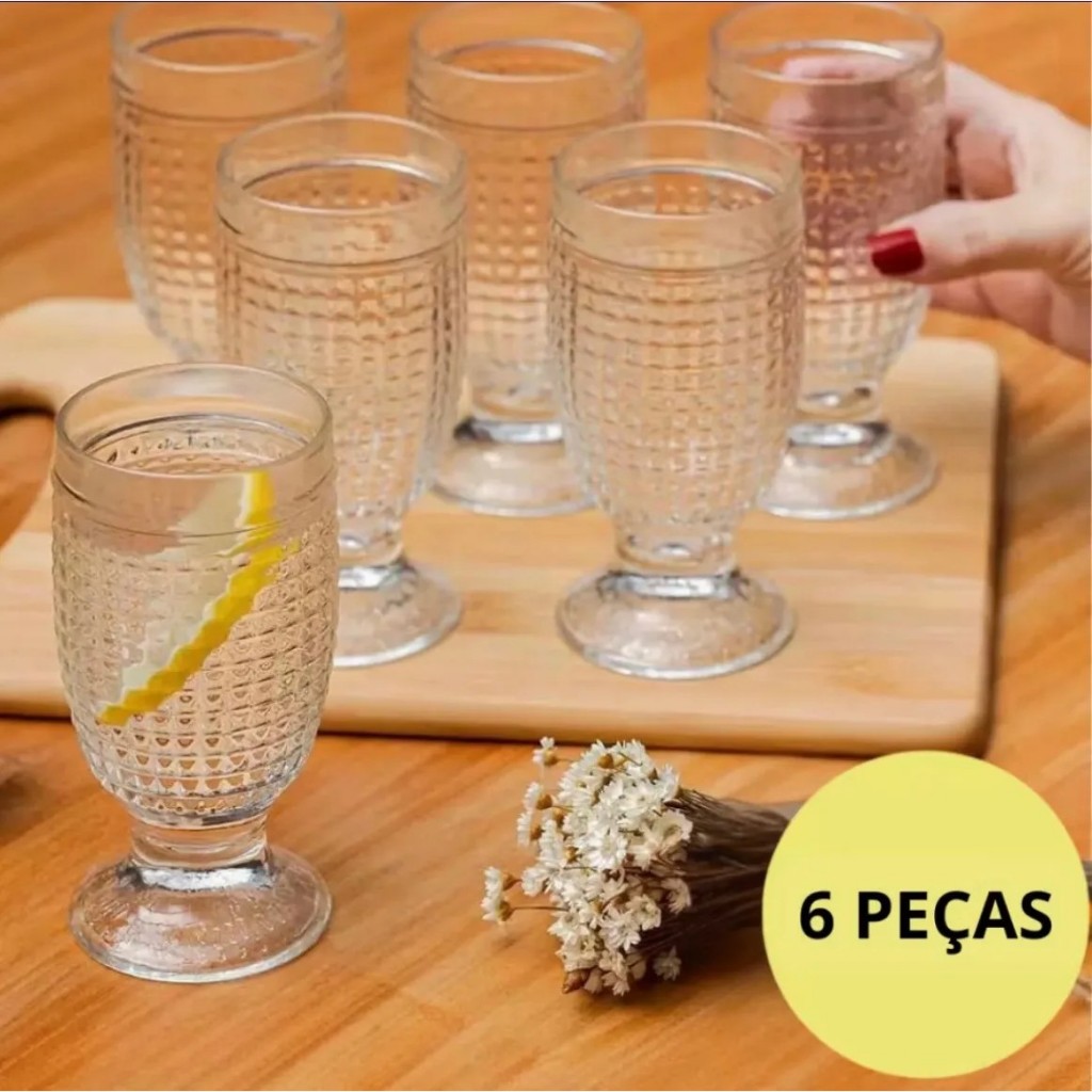 Conjunto 6 Copos Taças de Vidro 250ML para Água, Suco e Refrigerante Coleção Barroco
