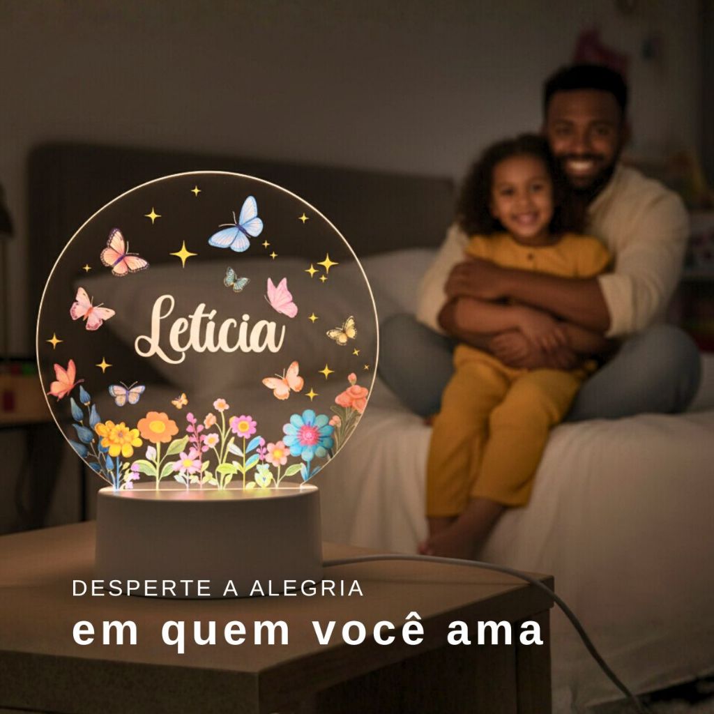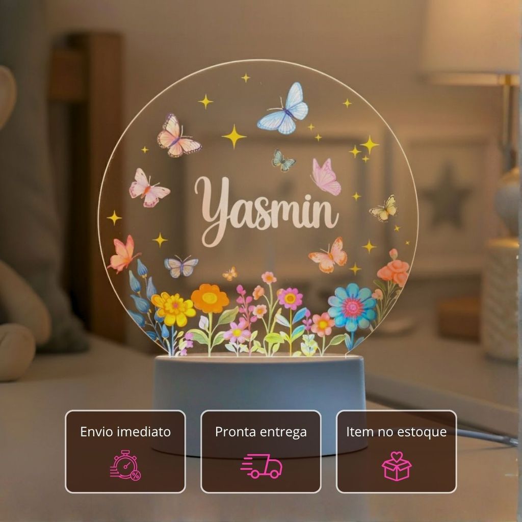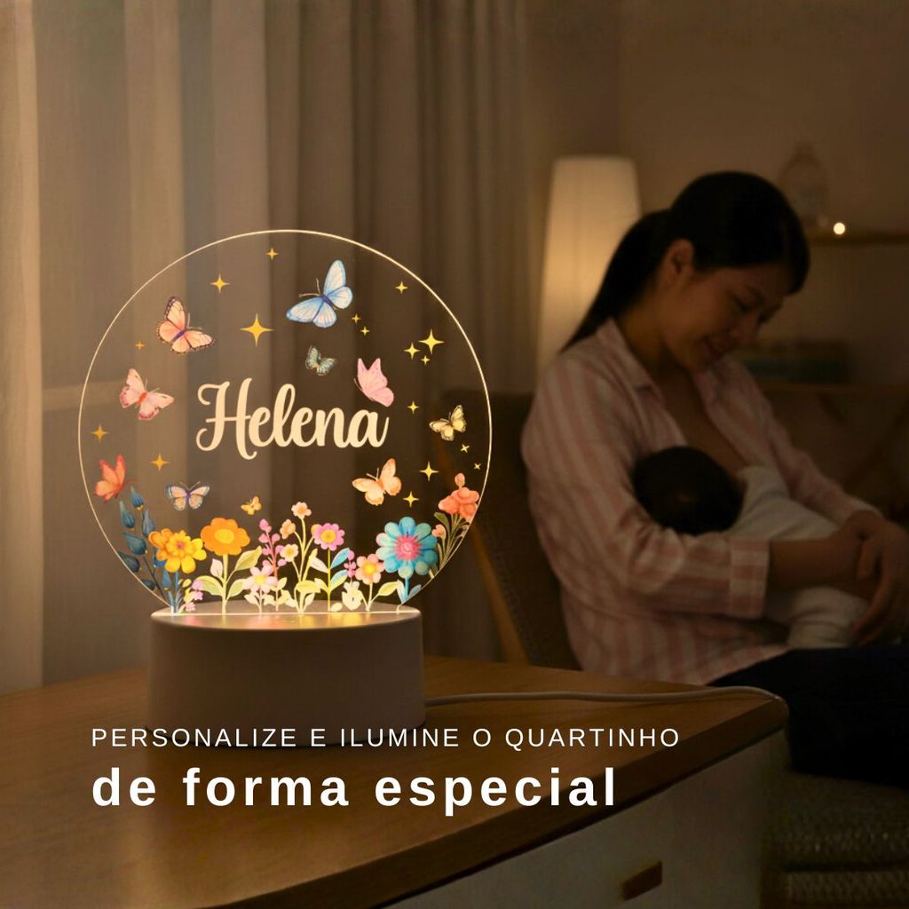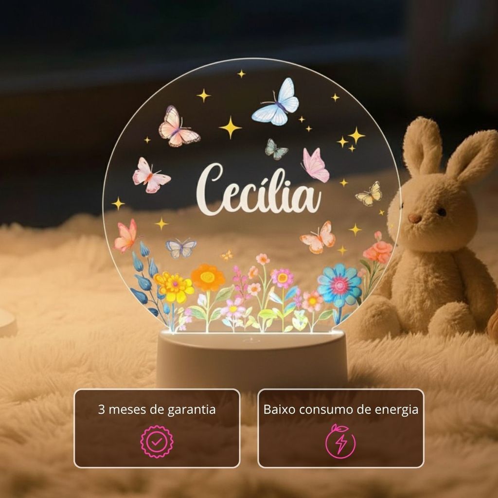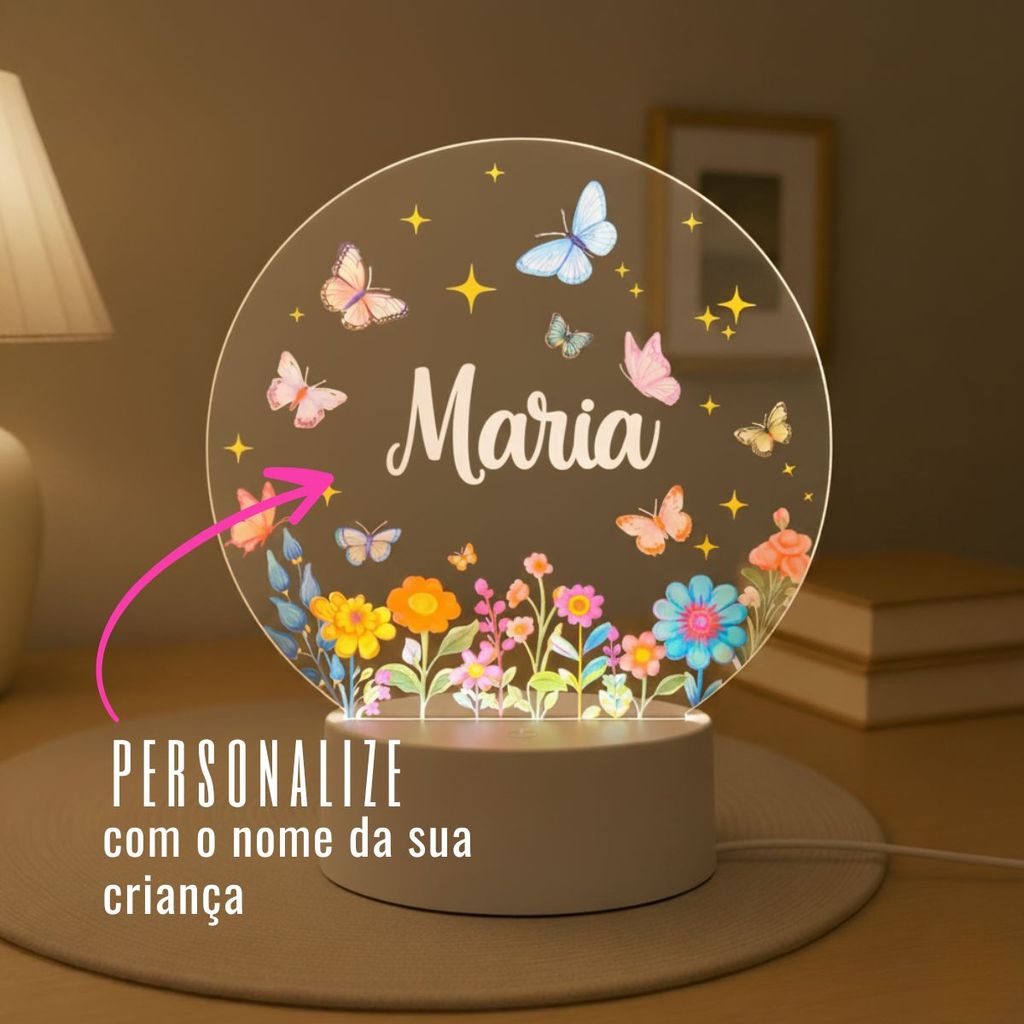 Luminária Personalizada Com Nome A Sua Escolha Para Quarto Menina Jardim Abajur Decoração Infantil