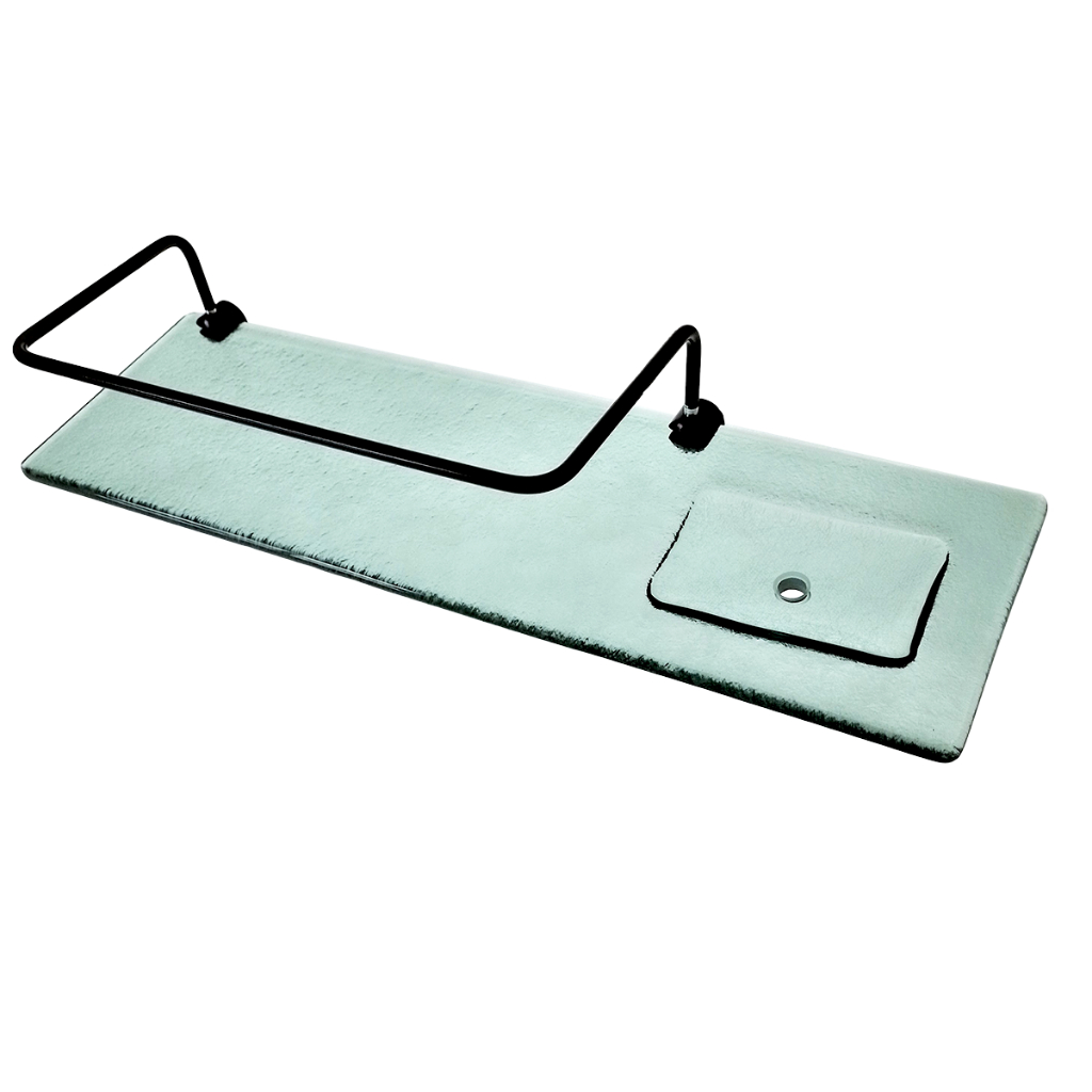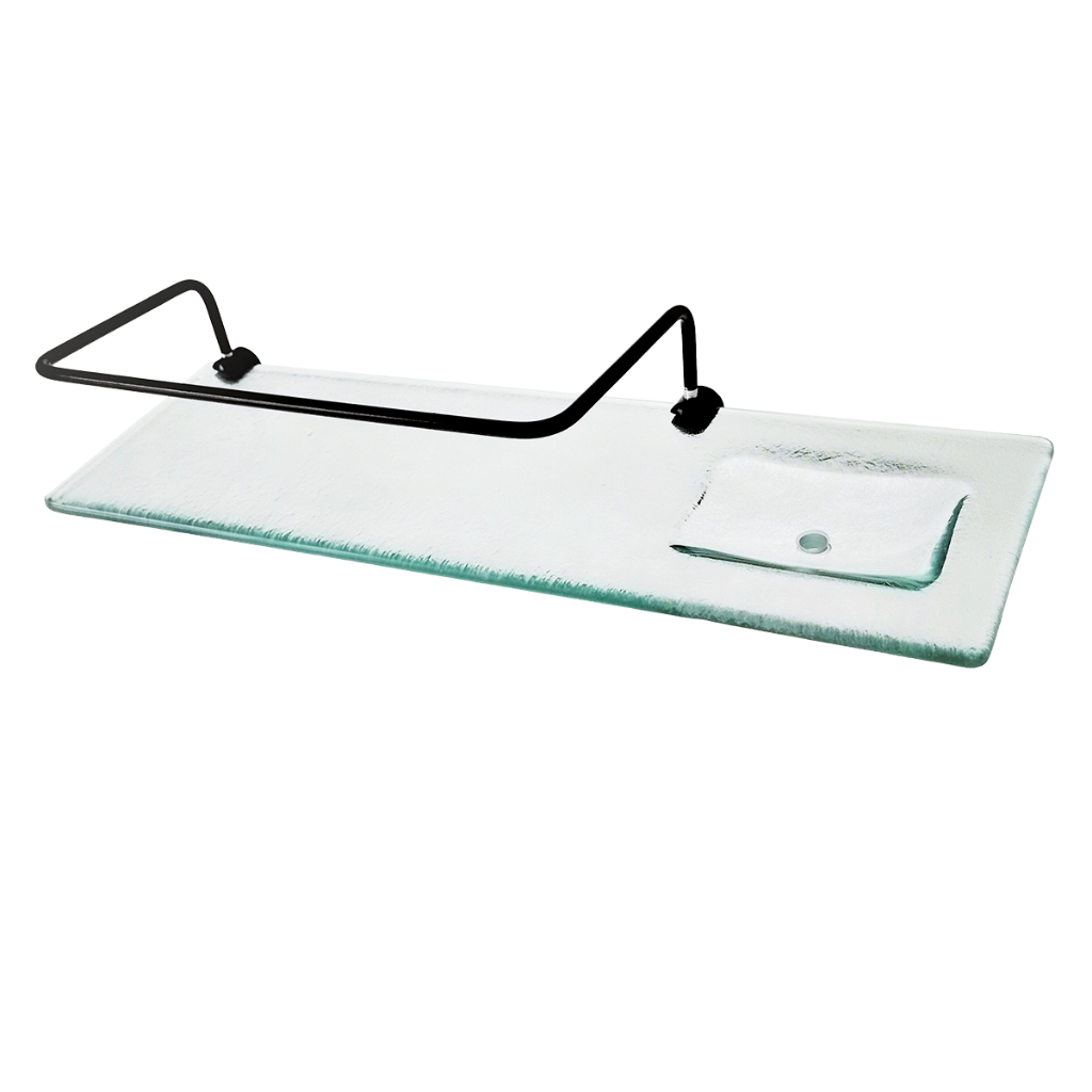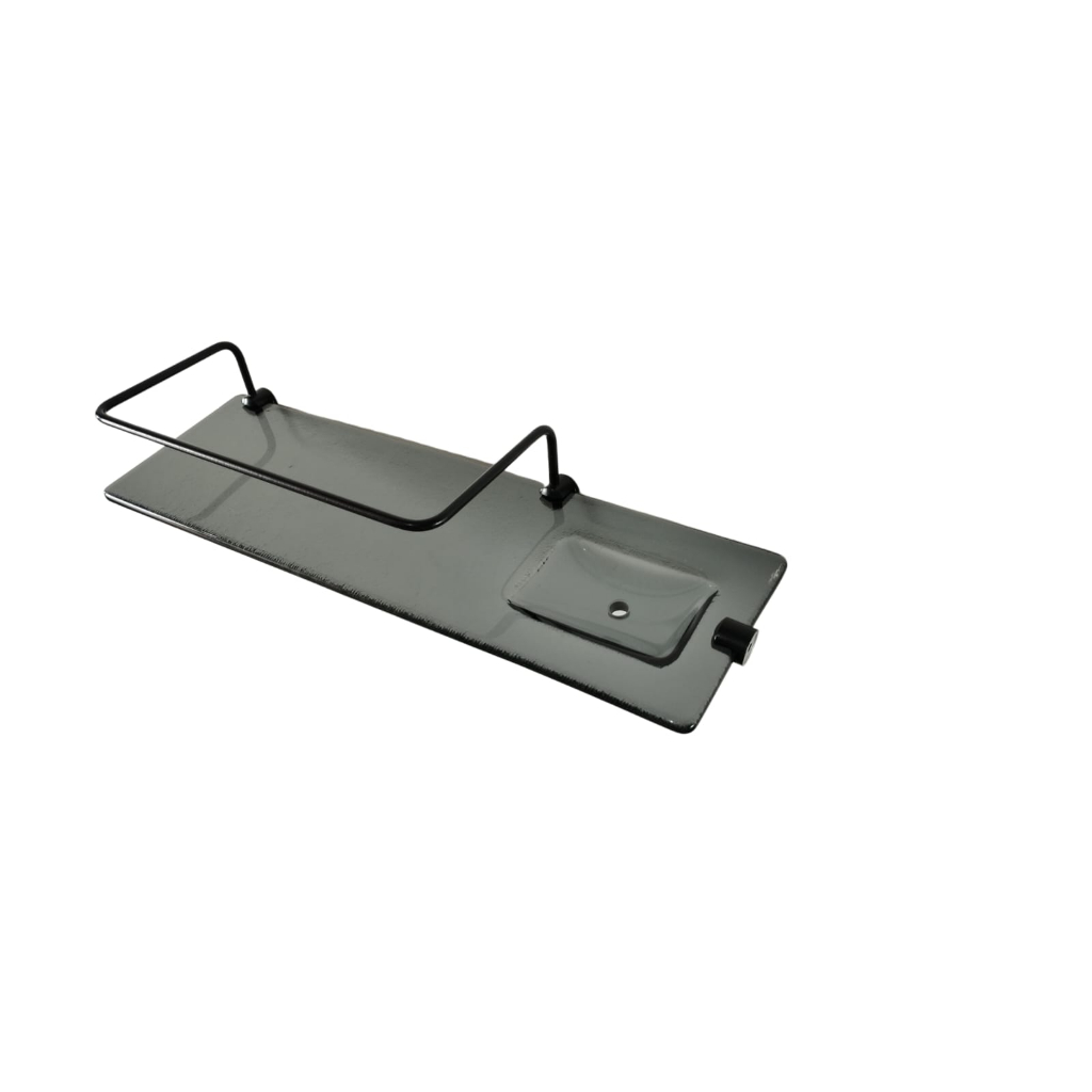 Porta Shampoo Com Saboneteira - Vidro - 40x12cm 8mm - Grade Preta