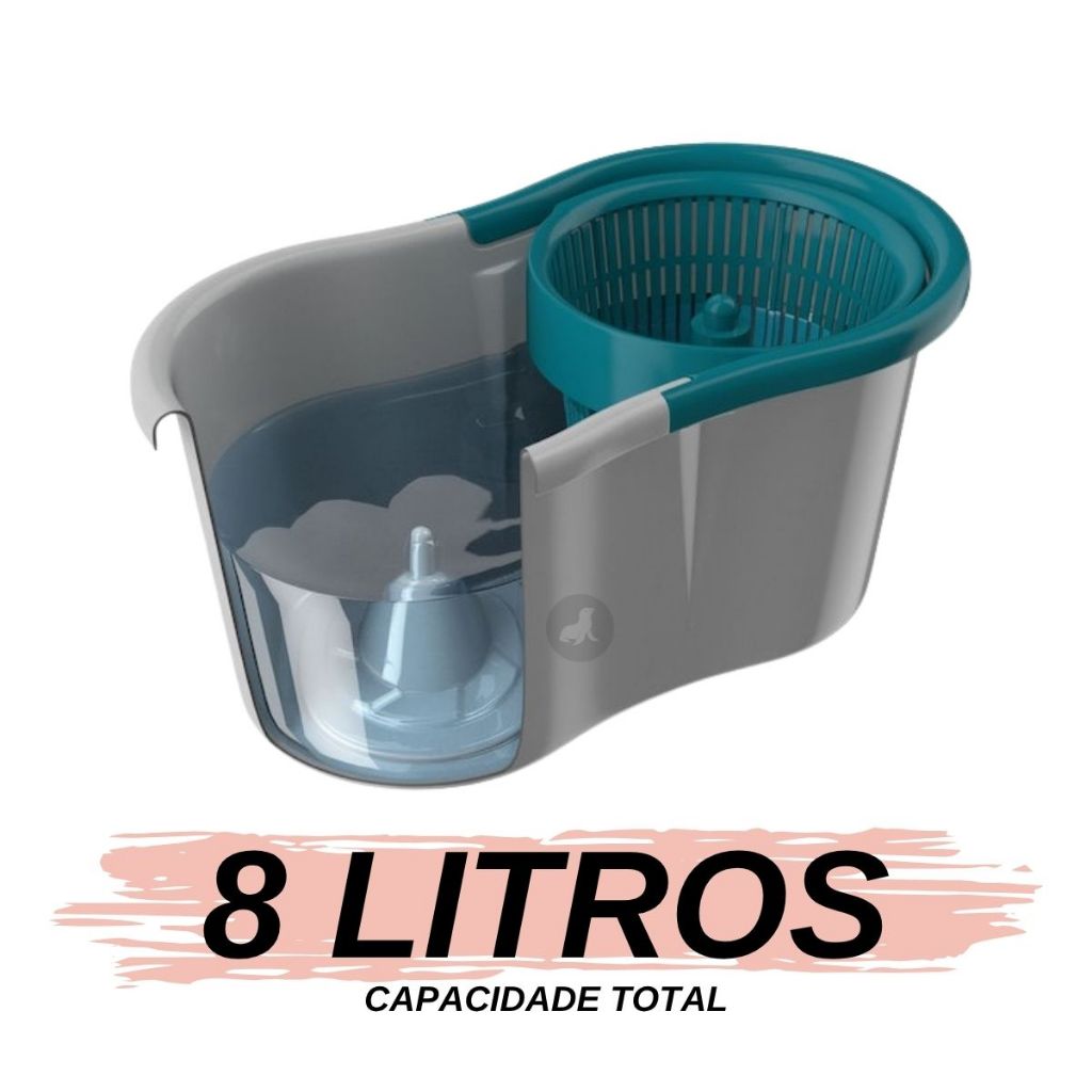 Mop Giratório 8 Litros Fit Cesto Plástico Esfregão Microfibra Cabo Inox
