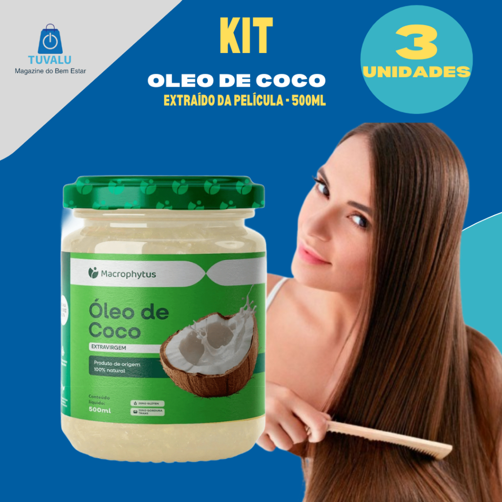 3x Óleo de coco Extravirgem -Extraído da Película do coco 500ml - Macrophyus