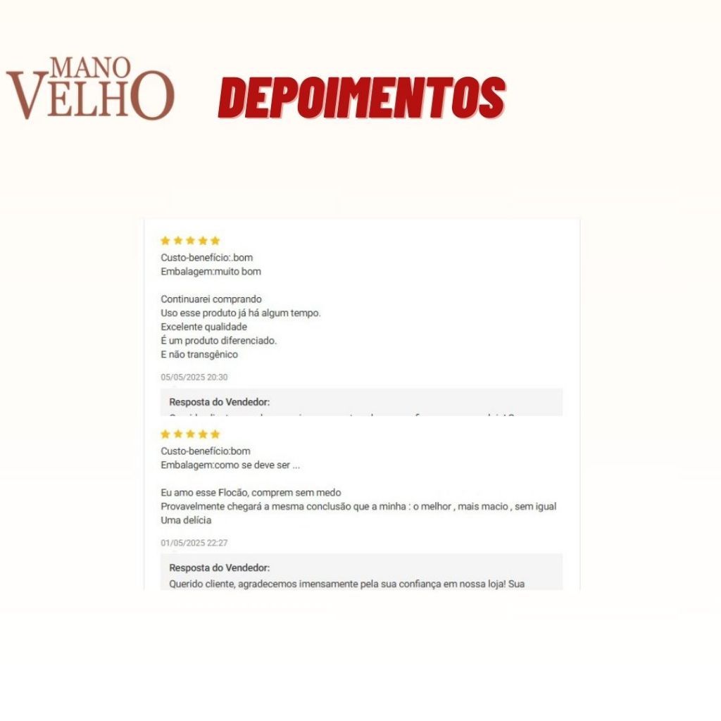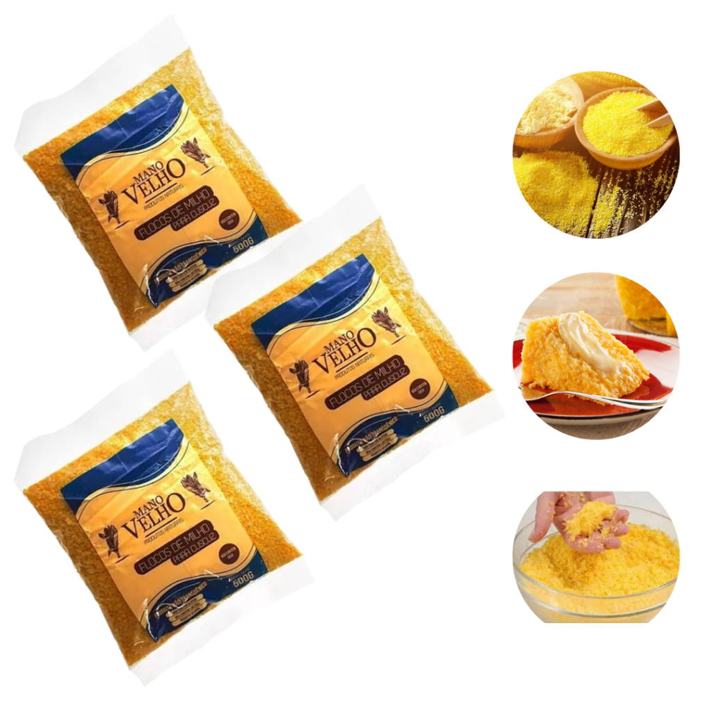 3x Flocos de Milho 100% Natural Não Transgênico - Mano Velho 500g