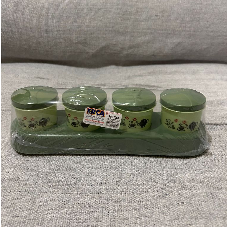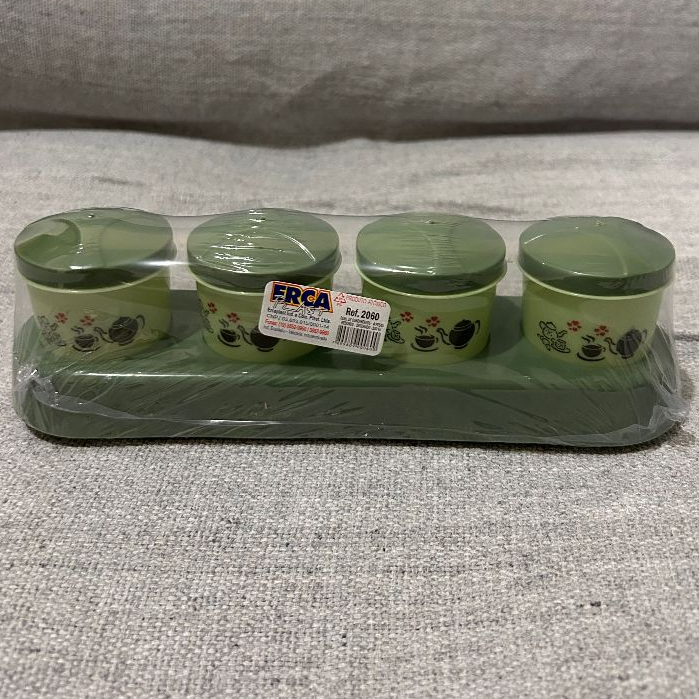 Porta Condimentos Temperos Plástico 4 Peças Com Suporte Escolha a Cor: Vermelho, Verde, Estampado, Cinza - EScolha