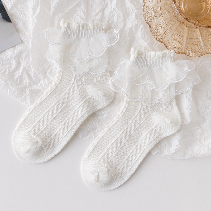 Meias De Renda Meninas Dança De Outono Cor Sólida Princesa