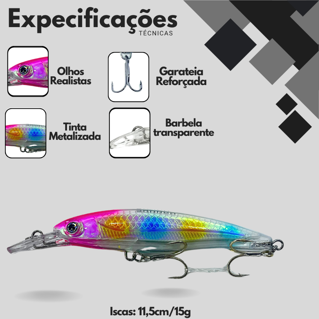 Isca Artificial De Fundo 11,5cm Flutuante P/ Tucunaré Traíra Predadores