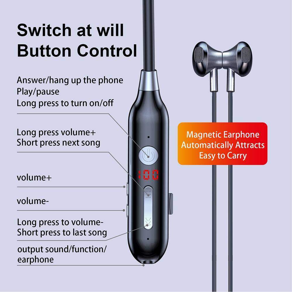 Fones De Ouvido Bluetooth Sem Fio Listaen Para Música 100 Horas Esportes Intra-Auriculares Bass Connect 2 Celular 9D Com Alça De Pescoço Saída De Microfone