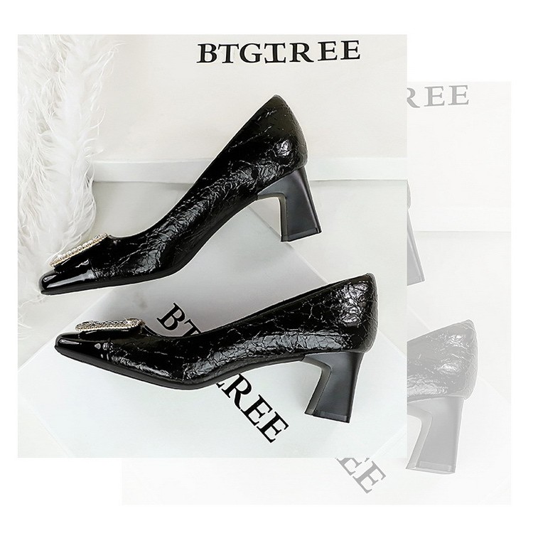 Sapatos Femininos de Salto Alto SEVENBIGTREES 5299-K32 Festa com Fivela de Strass Salto Grosso Salto Médio Boca Rasa Pat