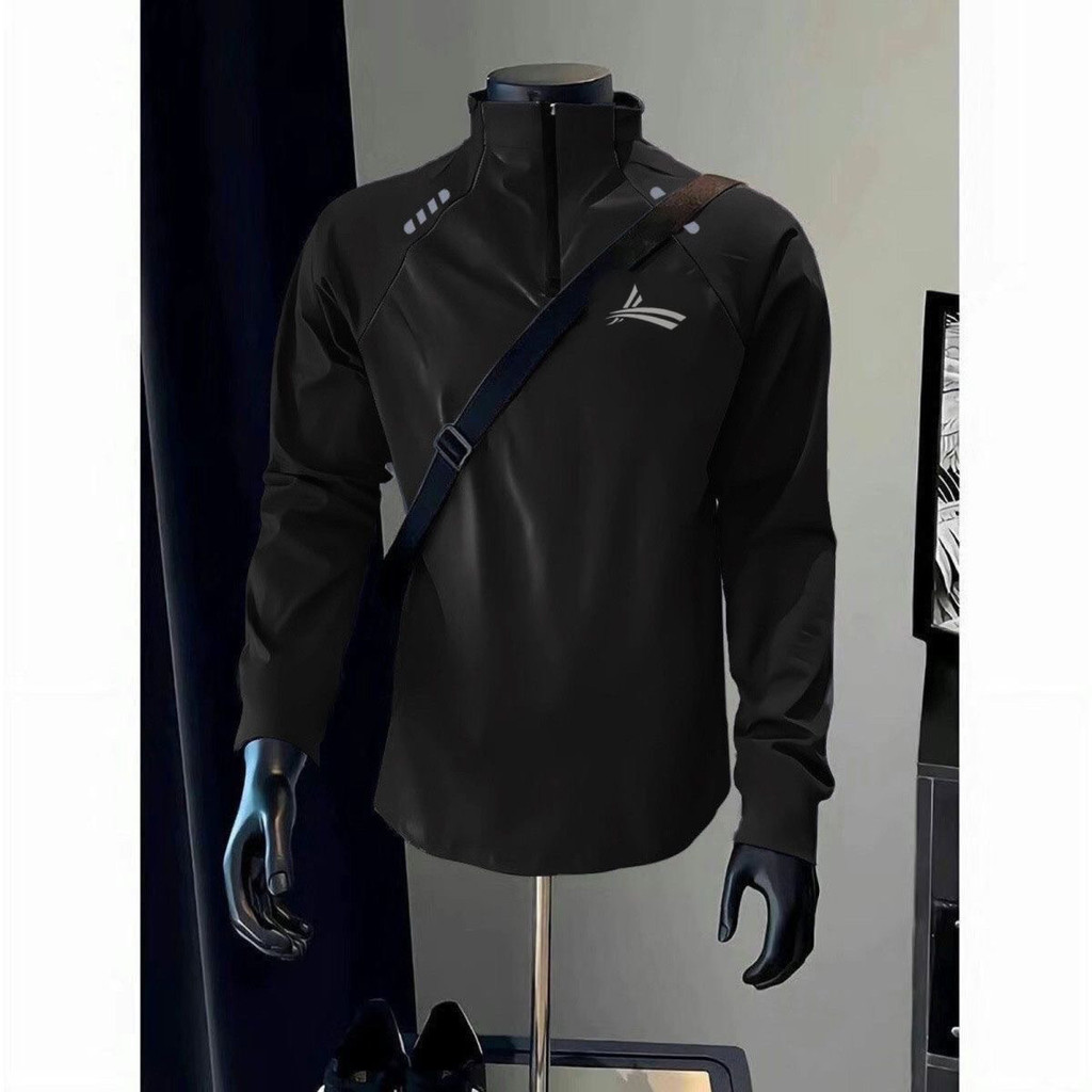 Outono inverno americano Raglan manga comprida camiseta treinamento esportes Fitness gola alta correndo zíper roupas mas