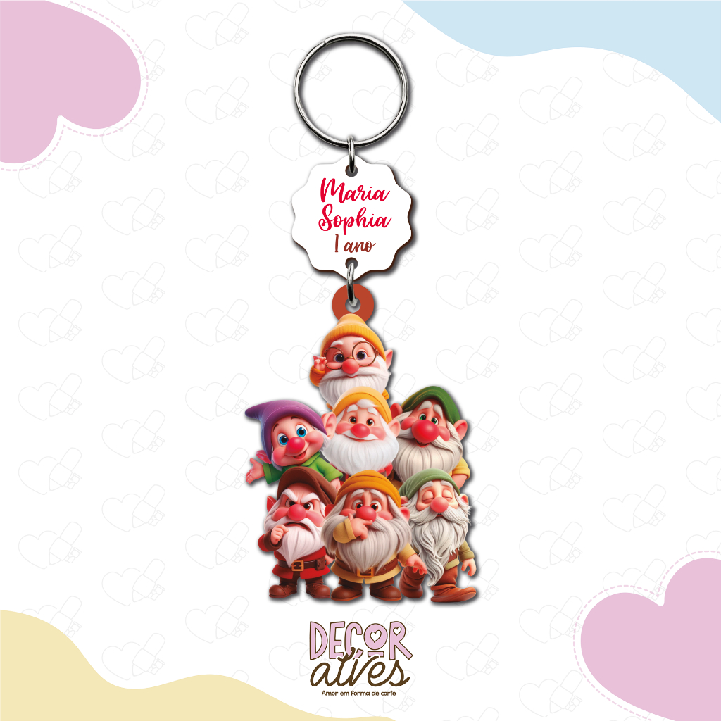 Branca de Neve Baby 3D - Chaveiro Personalizado MDF brilhoso Lembrancinha infantil