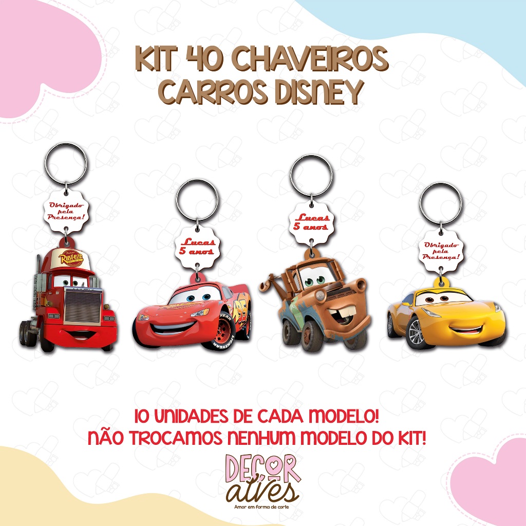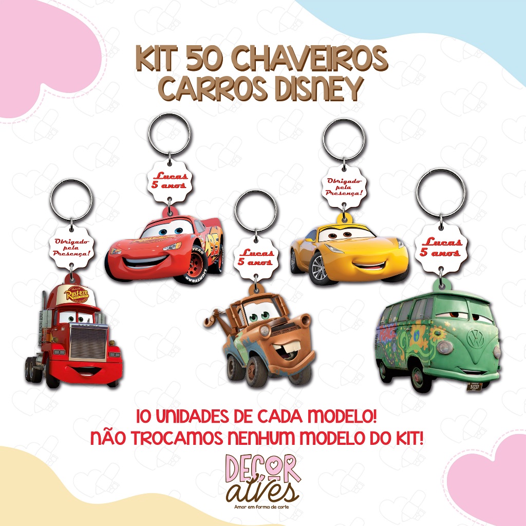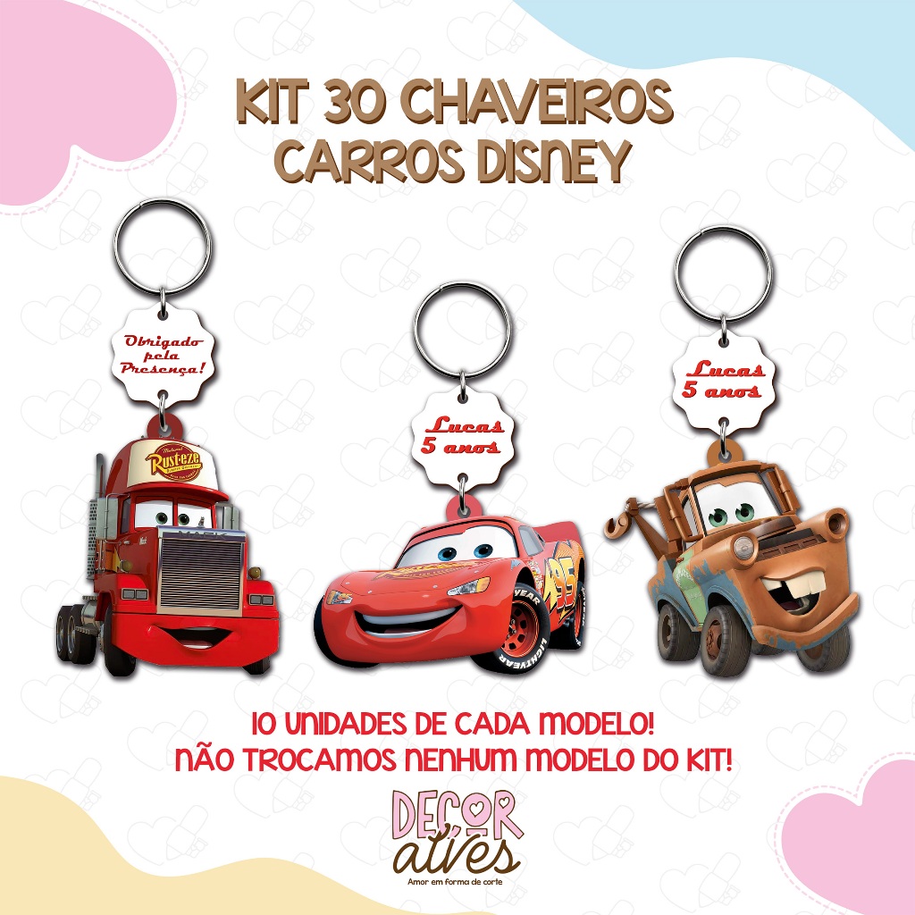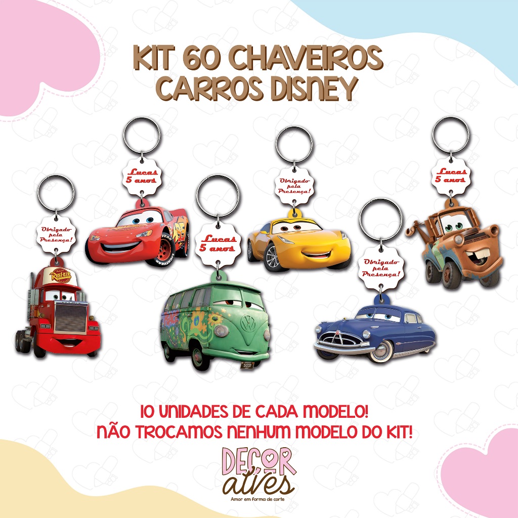 Carros Disney - KITS VARIADOS - Chaveiro Personalizado MDF brilhoso Lembrancinha infantil