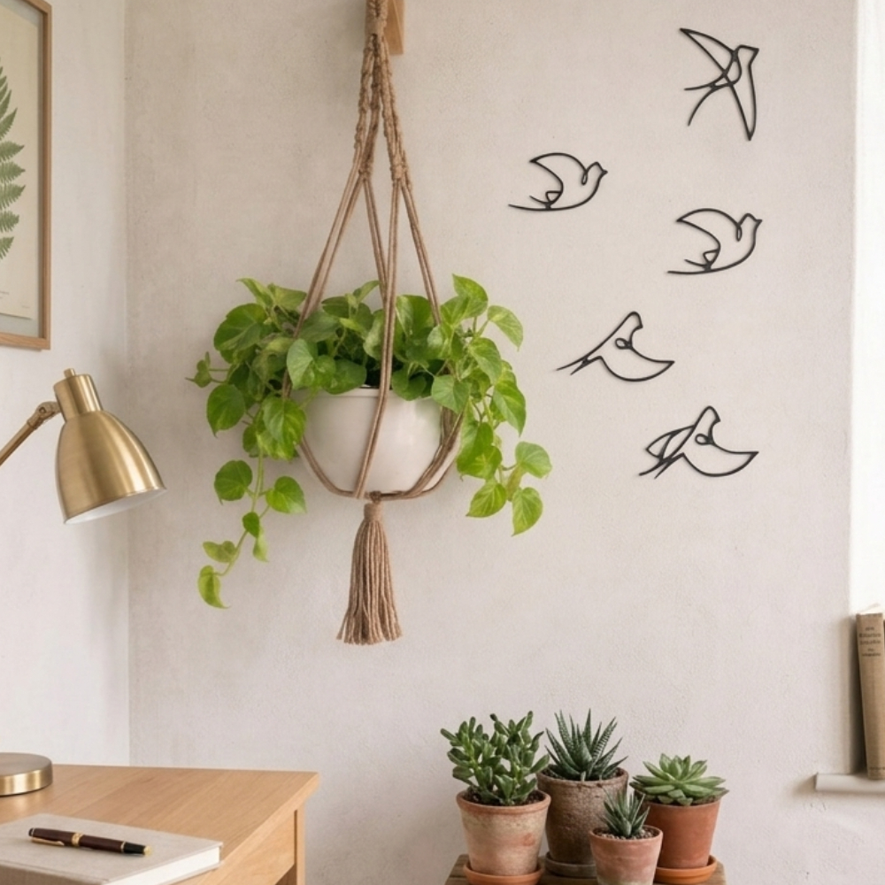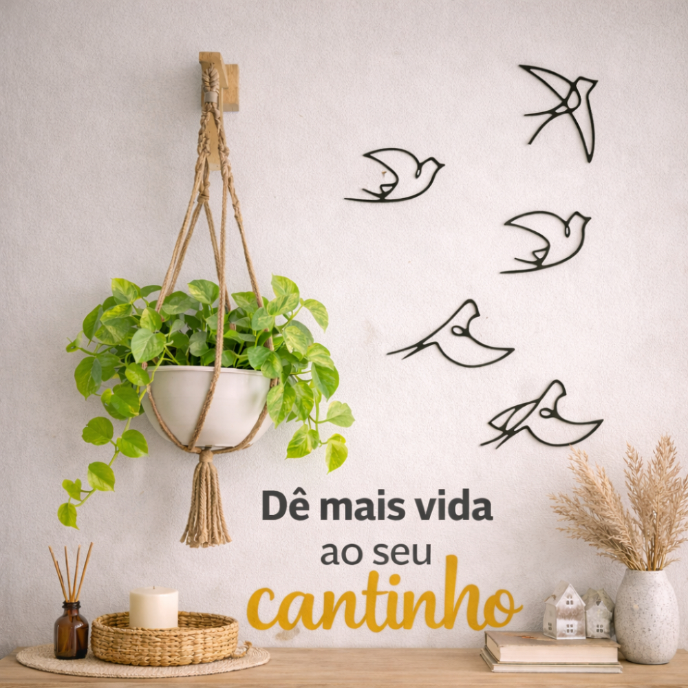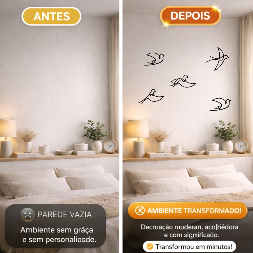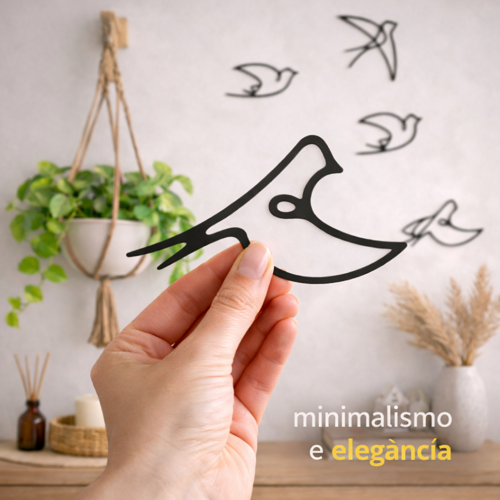 Kit 5 Quadros Vazados Pássaro Decorativo de Parede em MDF Quarto Sala Minimalista