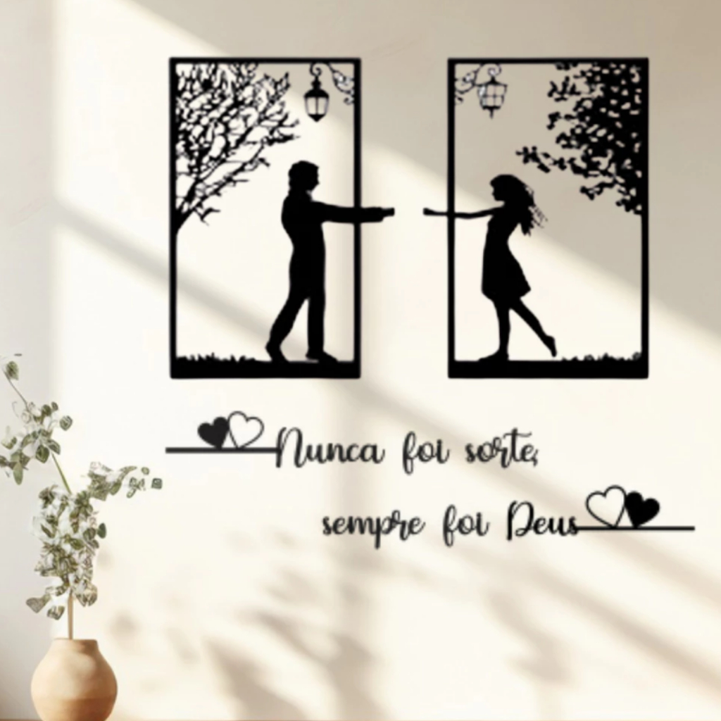 Painel casal + frase Nunca foi sorte sempre foi Deus + corações - mdf 3mm preto