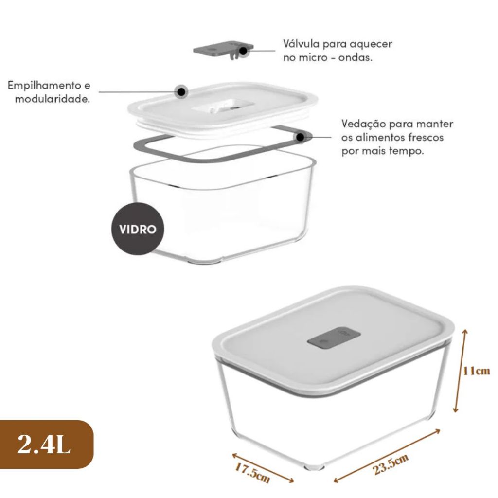 Pote de Vidro Hermético 2.4L Fresh Lock Branco Prático Multiuso com Vávula
